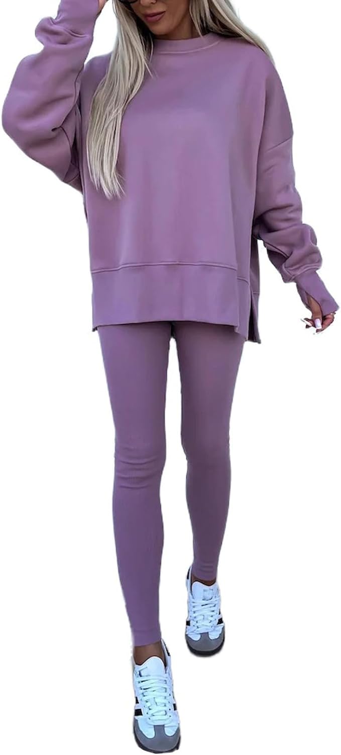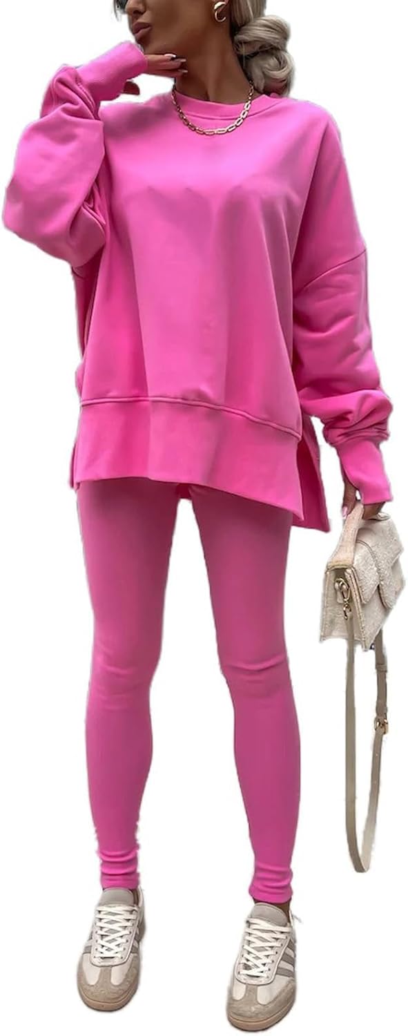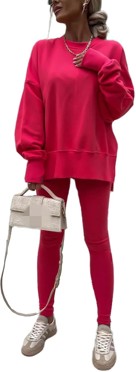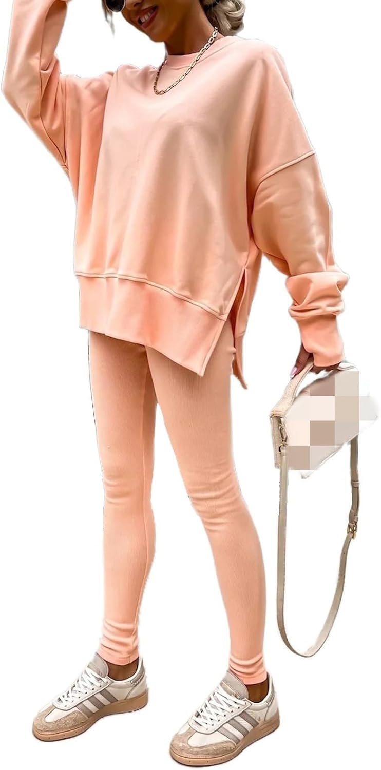 Design:This Tracksuit set designed a sweatshirt with leggings. oversized Sweatsuit,skinny leggings set for sport workout. Athletic and casual style two-piece suit with comfortable fabric, the sweatshirt and leggings can be worn separately, giving you more ways to match
