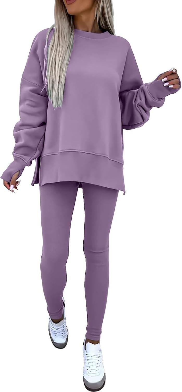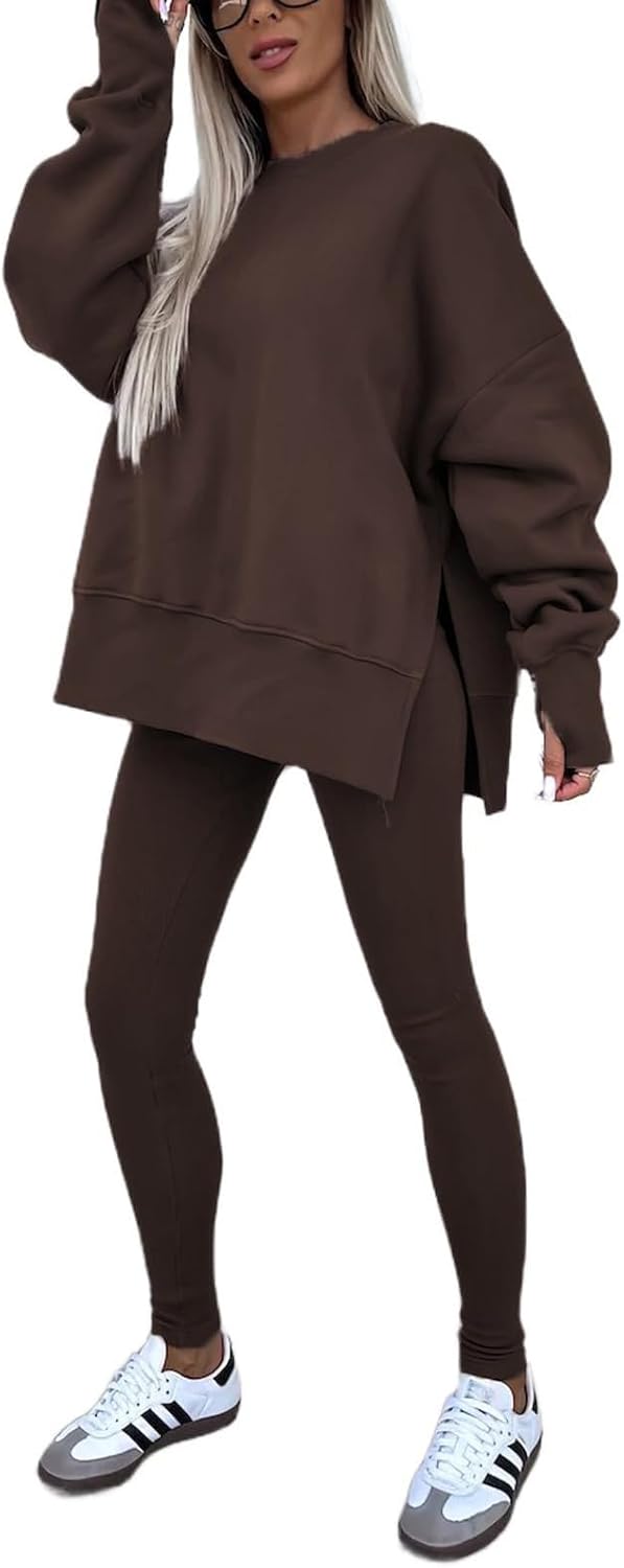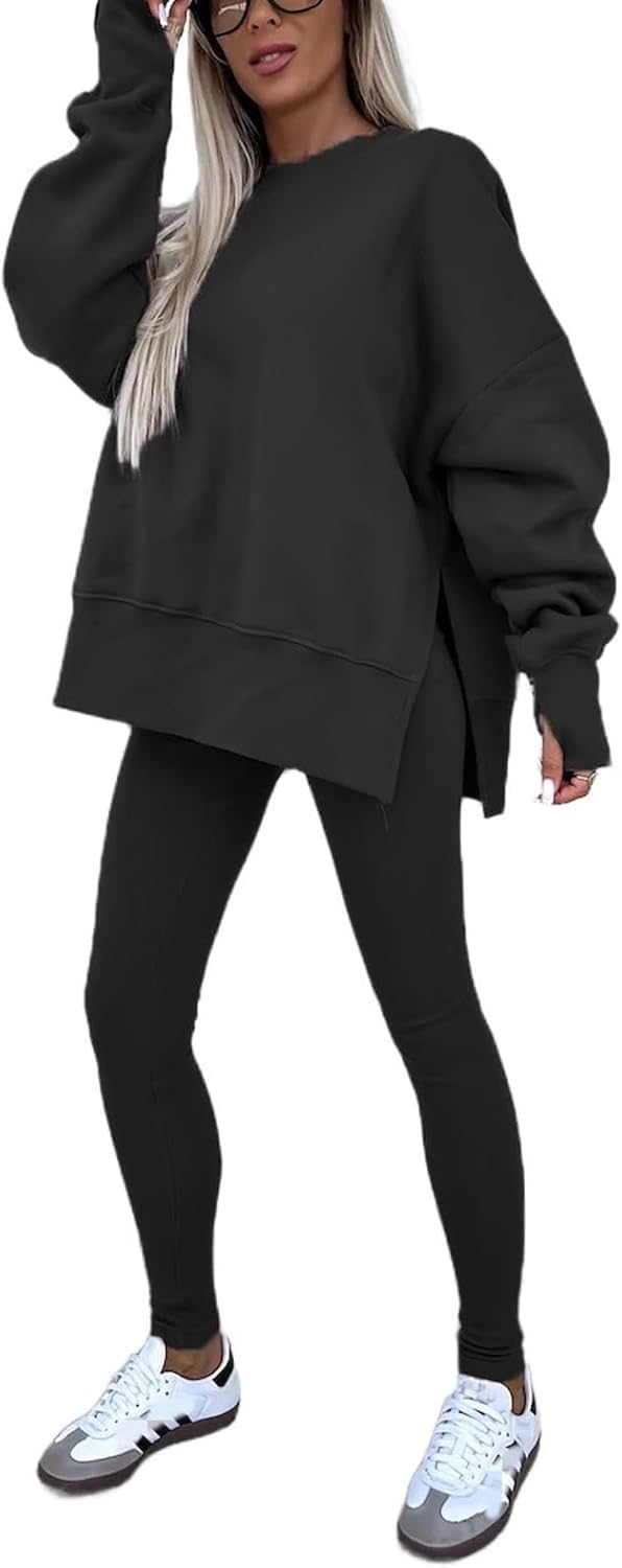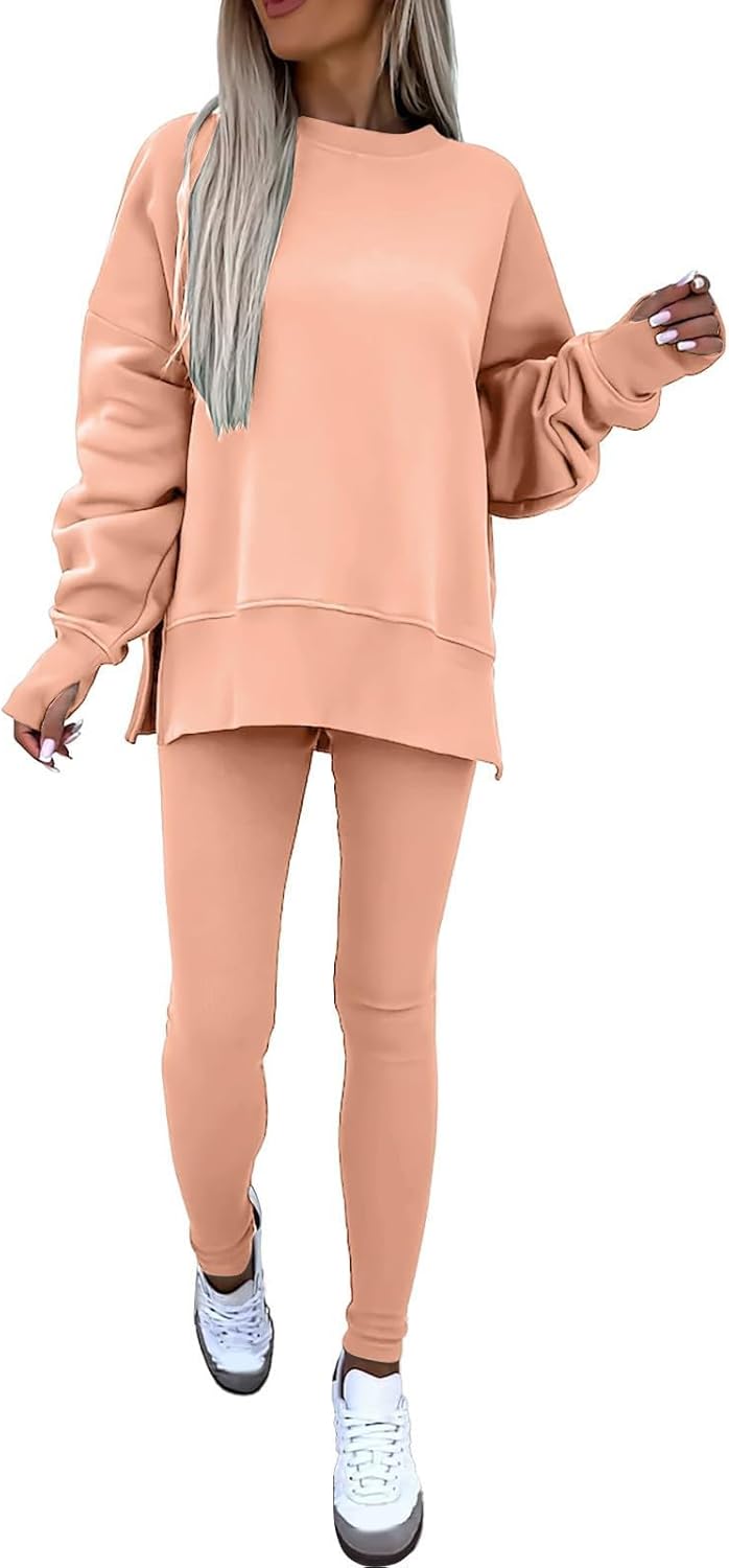 Design:This Tracksuit set designed a sweatshirt with leggings. oversized Sweatsuit,skinny leggings set for sport workout. Athletic and casual style two-piece suit with comfortable fabric, the sweatshirt and leggings can be worn separately, giving you more ways to match