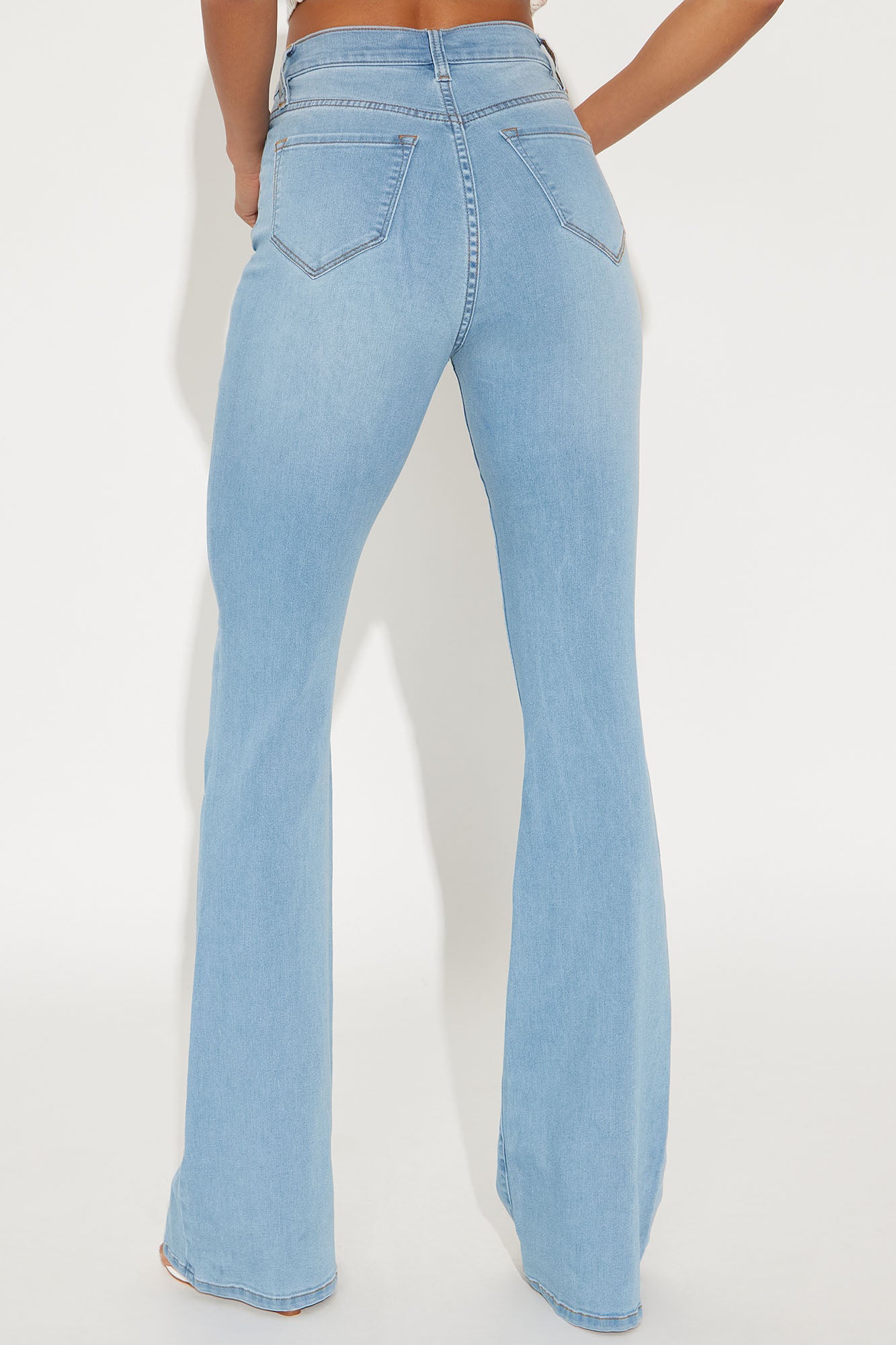 Our sexiest flare jean is offered in a range of washes in a high stretch, super soft fabric that hugs every curve. Fitted in the hips and thighs while flaring at the knee, these jeans elongate the legs and are perfect with a heel. Now offered in a range of washes, colors, and inseams.Available In Black, Dark Denim, Light Blue Wash, Light Wash, Medium Blue Wash And White.Available In Petite 31" Inseam, Regular 34" Inseam, & Tall 37" InseamHigh Stretch Denim11.5" High Rise22" Flare Leg OpeningFaux Front PocketsFunctional Back PocketsDisclaimer: Due To The Specialized Wash Process, Each Garment Is UniqueWhite And Colors: 52% Tencel 36% Cotton 10% Elasterell 2% SpandexBlack: 49% Rayon 32% Cotton 17% Polyester 2% SpandexBlue Washes: 49% Rayon 32% Cotton 17% Polyester 2% SpandexImported