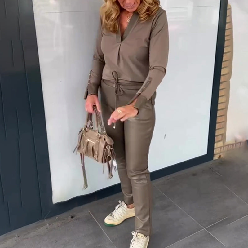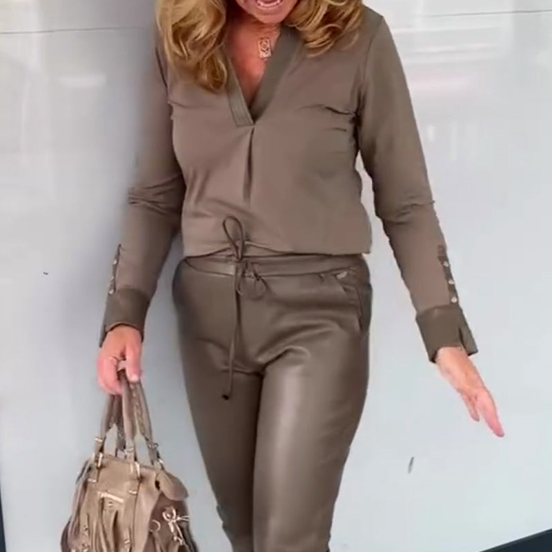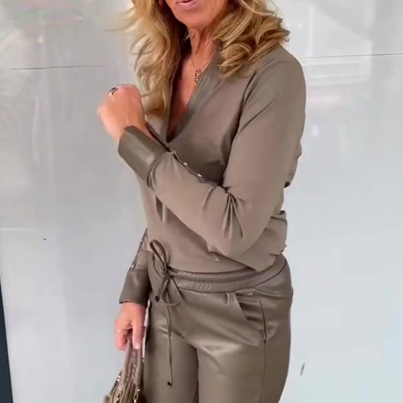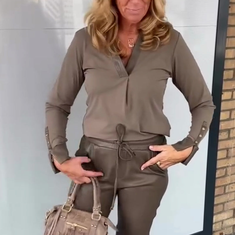 DISTINCTIVE TOP DETAILS – The V-neck design elongates the neckline and frames the face, creating a sleek, elegant silhouette. Long sleeves provide warmth during cool mornings and evenings, while buttoned cuffs add a refined, subtle detail that elevates the look.