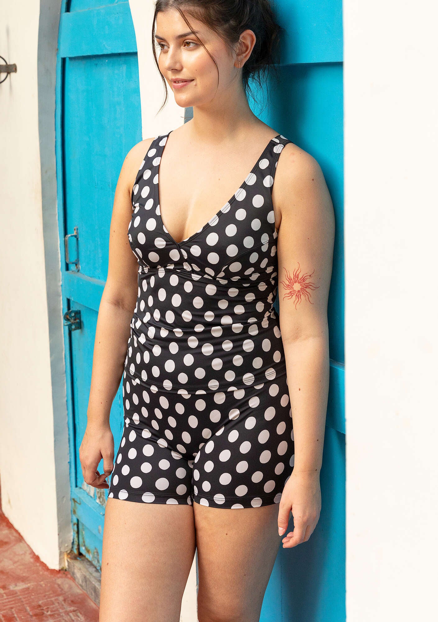 • Swim shorts with a high-waisted, boyleg cut. Available in black and with a printed design.