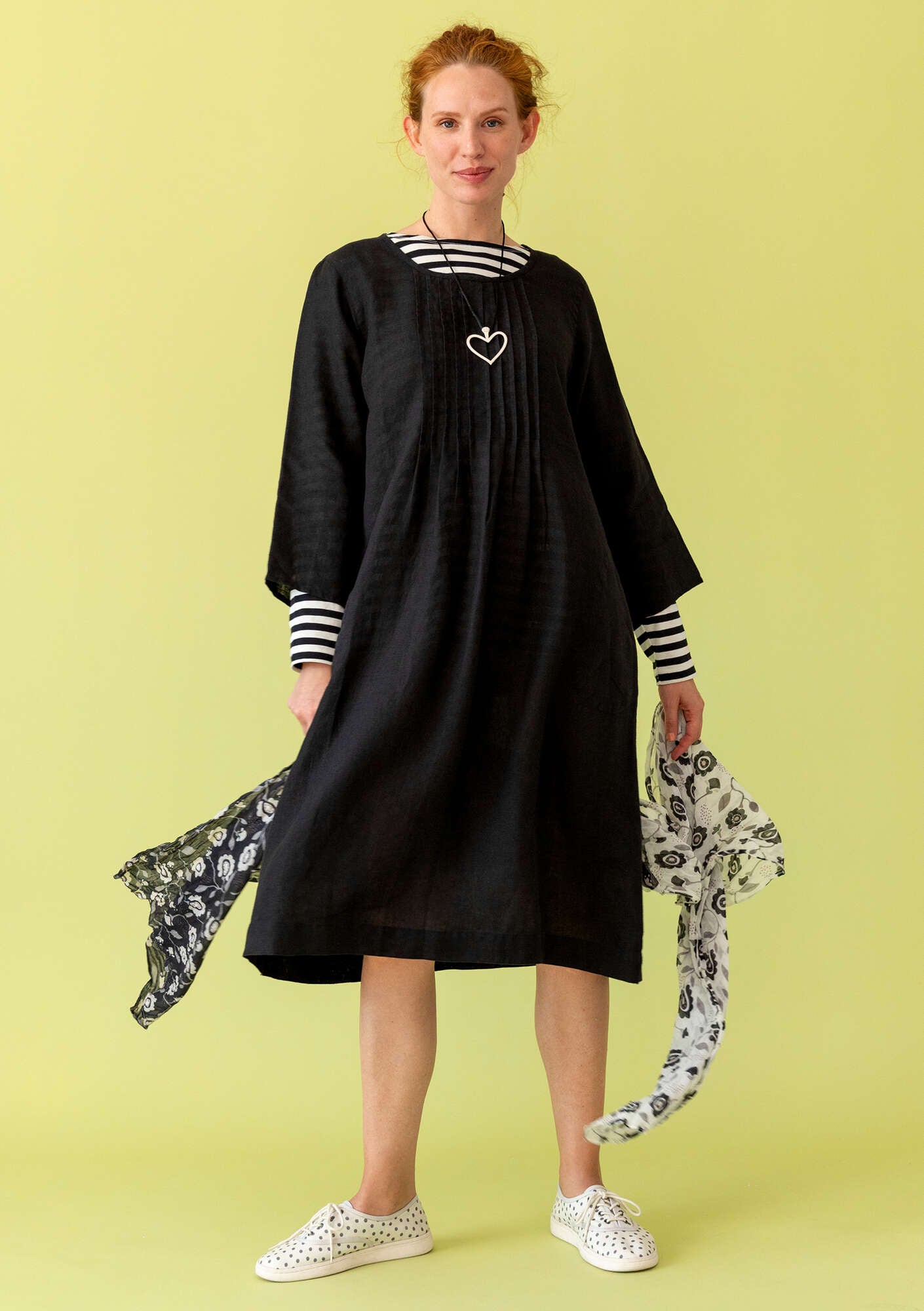 Features stitched pleating at the front. Shaped at the top, flaring gently towards the hem. Bracelet length sleeves. Comes in solid colours and with a yarn-dyed check print. Side pockets.