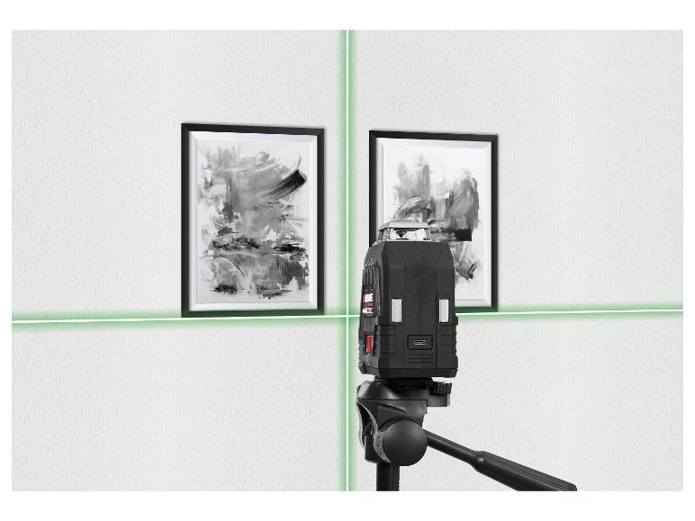- Laser rotatif à 360° avec projection horizontale panoramique et ligne laser croisée verticale