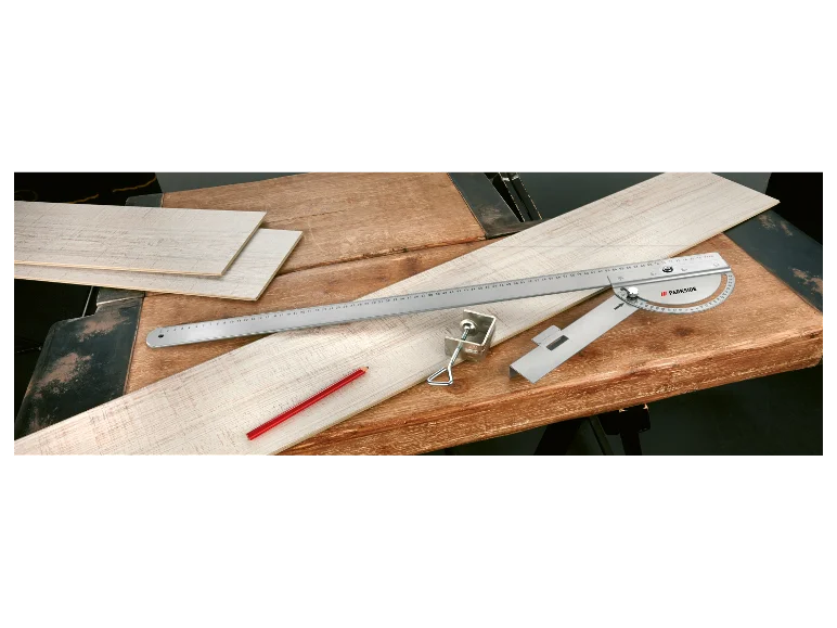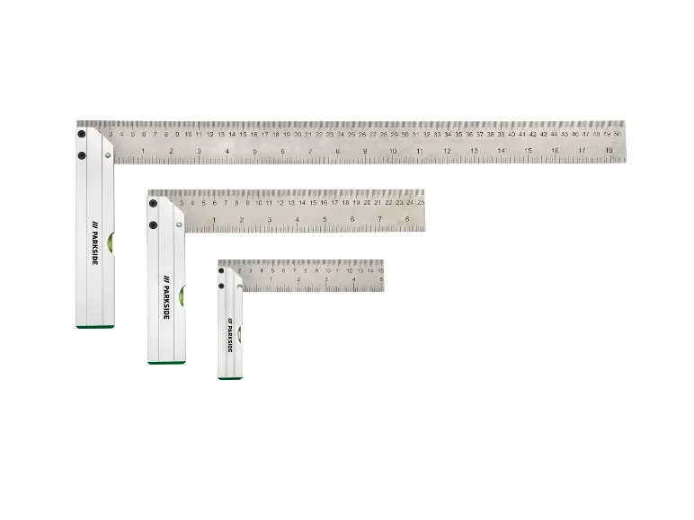| Matériaux: | Équerres: Aluminium, acier inoxydable, plastique; Guide de coupe angulaire: Plastique, acier; Niveau à bulle gradué avec poignée: Aluminium, plastique; Gabarit de perçage universel: Aluminium, plastique, acier |