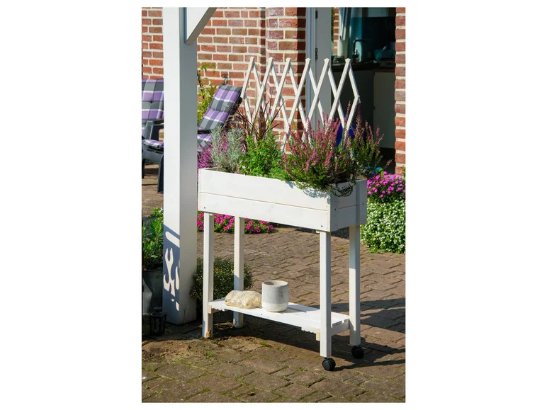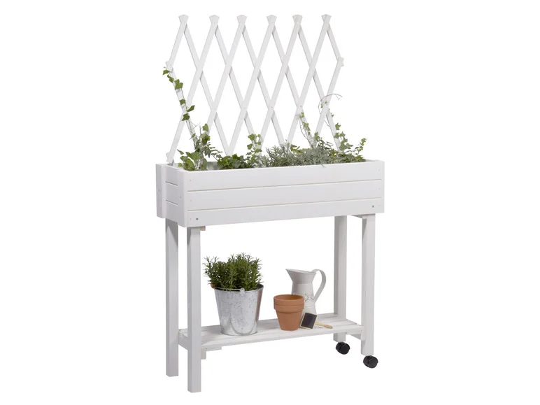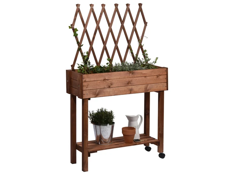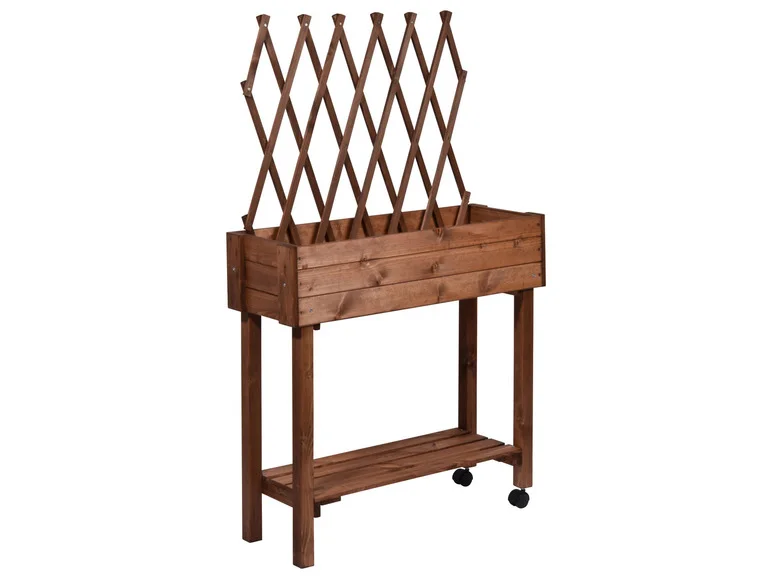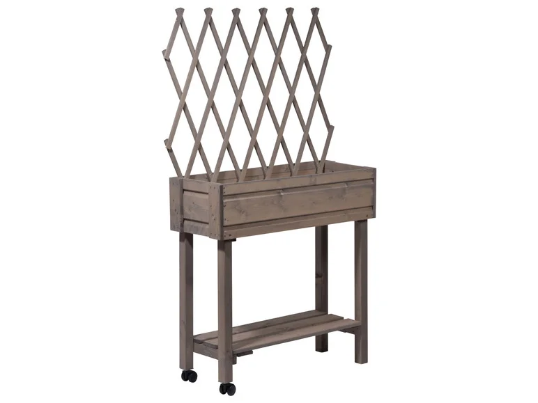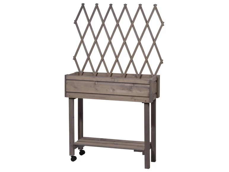 dobar Jardinière surélevée à roulettes avec treillis, L 79 x l 28,5 x H130 cm