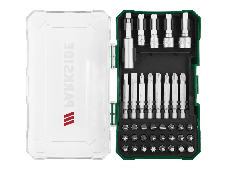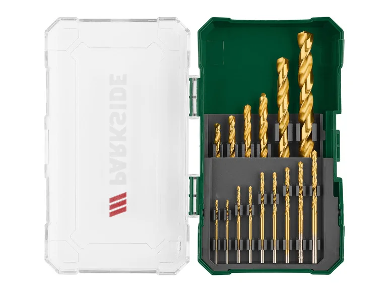 PARKSIDE® Jeu de forets hélicoïdaux HSS ou jeu de forets à pierre ou jeu de forets à bois ou jeu de tournevis à embouts PBB 4 C2 15 pièces ou 37 pièces
