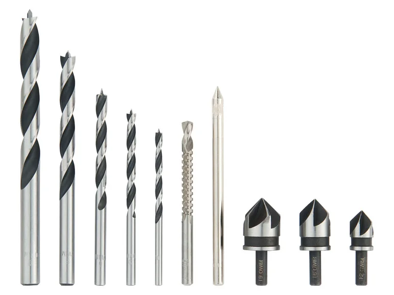 - Jeu de mèches à bois et de fraises coniques à chanfreiner