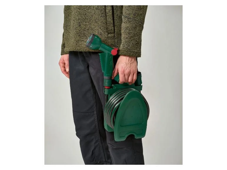 | Accessoires : | 1x tuyau, 1 x enrouleur de tuyau, 1 x pomme d'arrosoir, 1 x raccord de tuyau (F) 3/8" avec arrêt d'eau, 1 x raccord de tuyau (F) 3/8", 1 x raccord de robinet (M) avec filetage intérieur G1" + raccord réducteur avec filetage intérieur G3/4" |