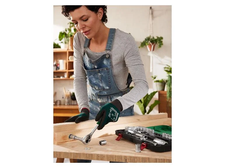 | Contenu | 16x embouts de douilles 1x cliquet réversible droite/gauche (72 dents), courbé avec fonction de déverrouillage rapide 3x clé à bougie avec pictogramme de bougie laser 1x rallonge 200 mm 1x glissière 1x rallonge 75 mm 1x cardan 60 mm |