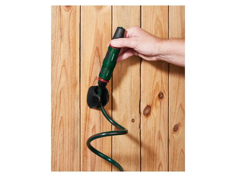 | Accessoires | Set de tuyau spiralé : 1x raccord de tuyau avec arrêt d’eau 1x raccord de tuyau 1x arroseur de jardin 1x raccord de robinet avec filetage intérieur G1“ 1x réducteur avec filetage intérieur G¾“ 1x support de robinet Set de tuyau pour terrasse : 1x raccord de tuyau avec arrêt d’eau 1x raccord de tuyau 1x douchette 1x raccord de robinet avec filetage intérieur G1“ 1x réducteur avec filetage intérieur G¾“ 1x support de robinet Set de tuyau plat : 1x raccord de tuyau avec arrêt d’eau 1x raccord de tuyau 1x arroseur de jardin 1x raccord de robinet avec filetage intérieur G1“ 1x réducteur avec filetage intérieur G¾“ 1x support de robinet |