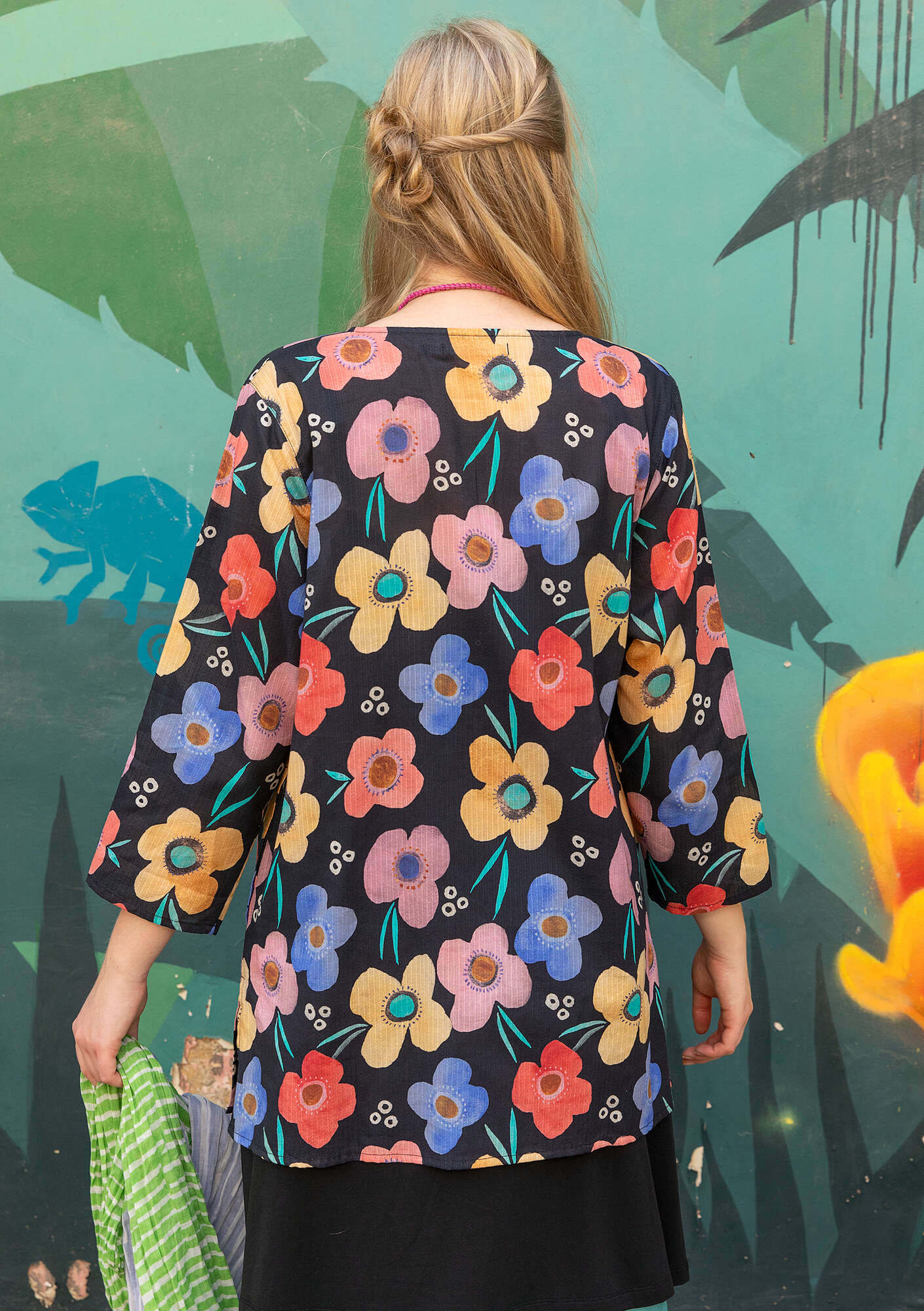 • Digitally-printed, round-neck tunic that buttons down the front and flares gently towards the hem with its side slits. Side pockets and mother-of-pearl buttons.