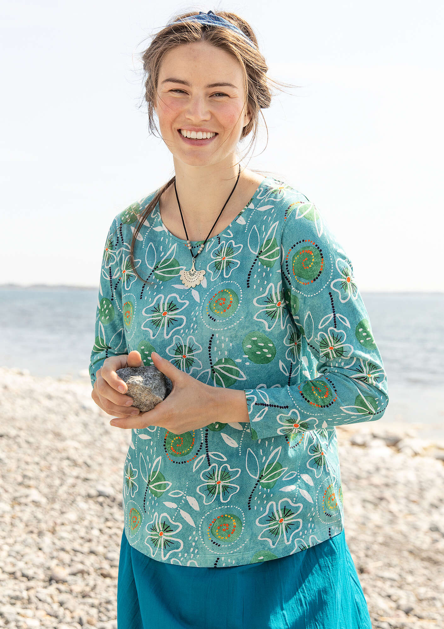 The digitally printed design captures the sweeping strokes of the watercolour brush. Featuring a round neckline and full-length sleeves.