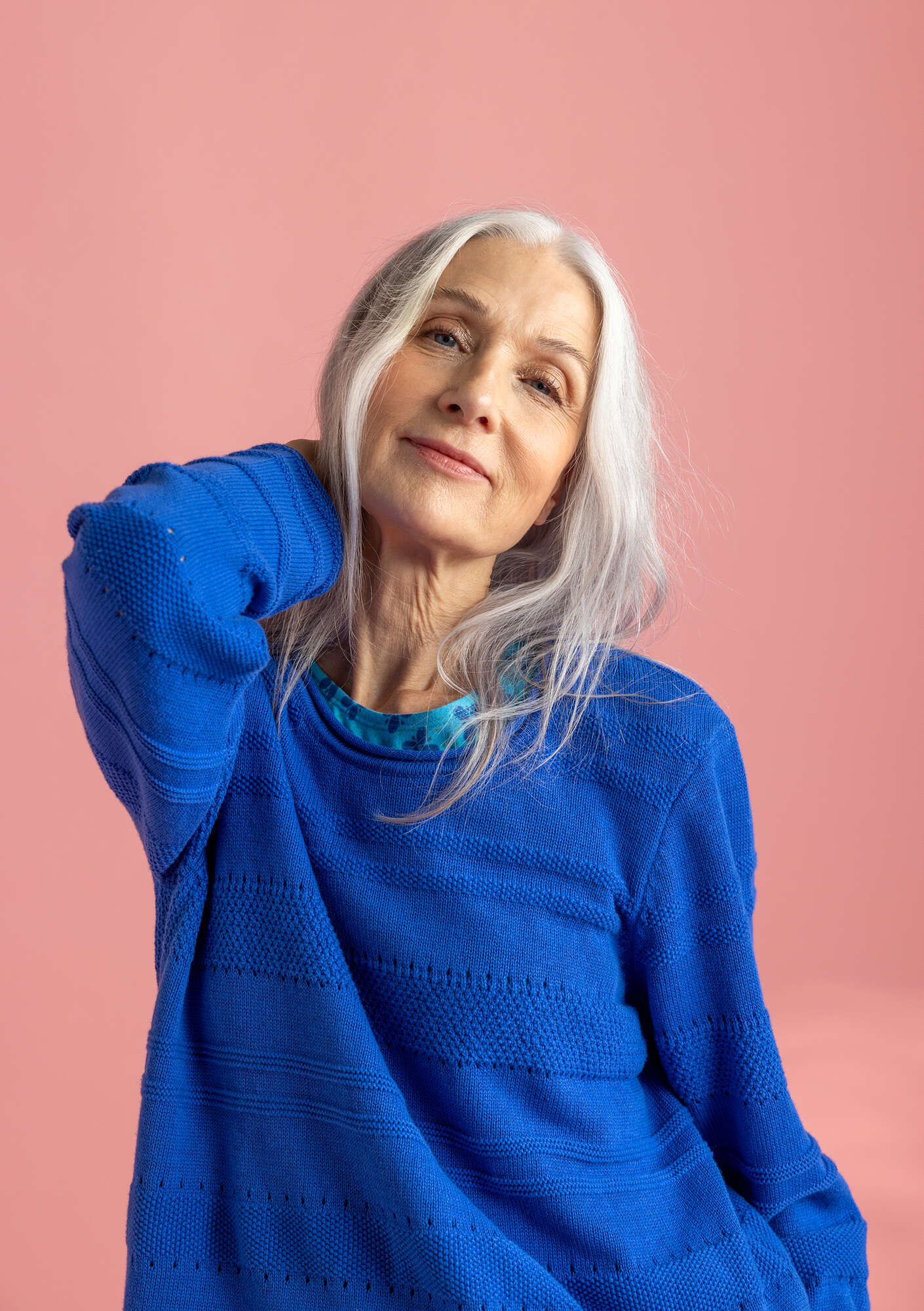 • Easy-to-wear sweater with full-length sleeves. Textured stripes and small, neat borders in a pointelle knit. Pretty rolled-edge cuffs and hem. Comes in solid colours and multicoloured.
