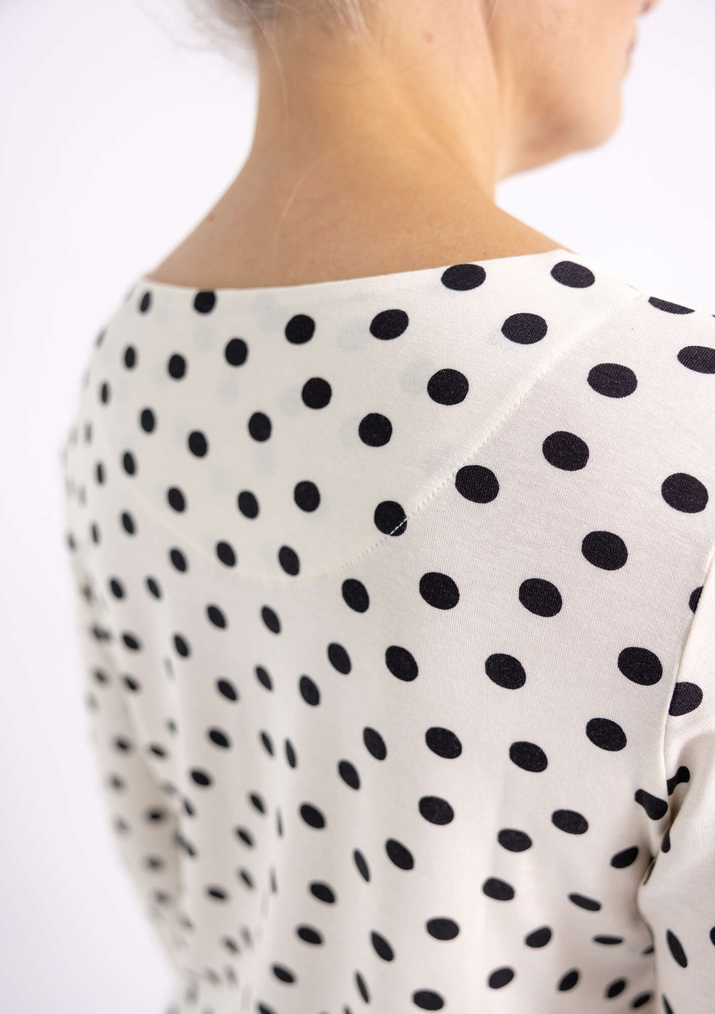 • Simple, slip-on and go style. Round neckline and full-length sleeves. Available in solid colours and with a dot print.