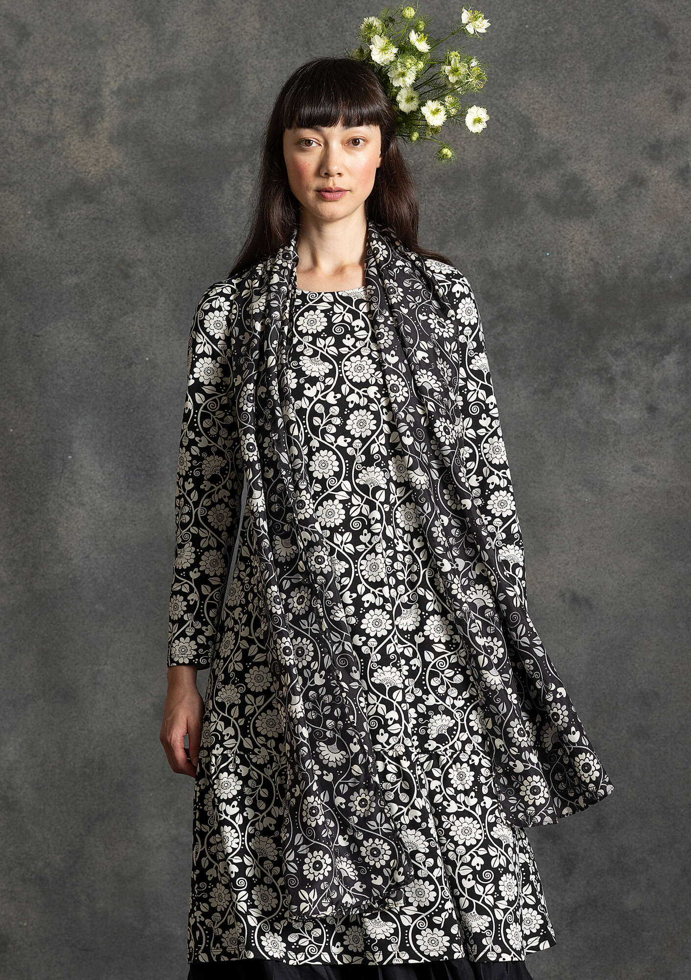 Beautiful woven silk shawl with an all-over vibrant floral and foliage print design.