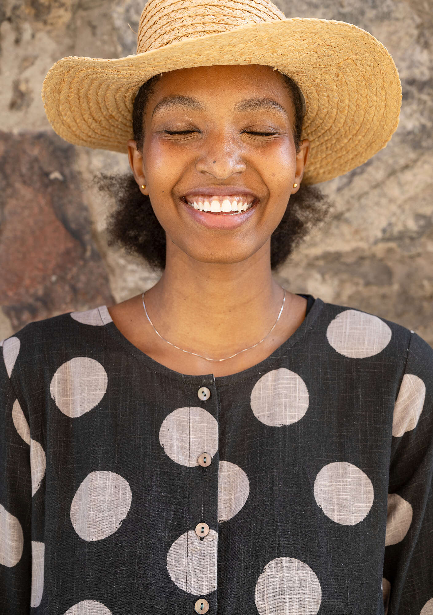 100% cotton. The cotton is certified organic. Every stage of the manufacturing chain is certified. Delicate wash at 40°. Iron on medium heat. 2-3% shrinkage. Made in Delhi, India.