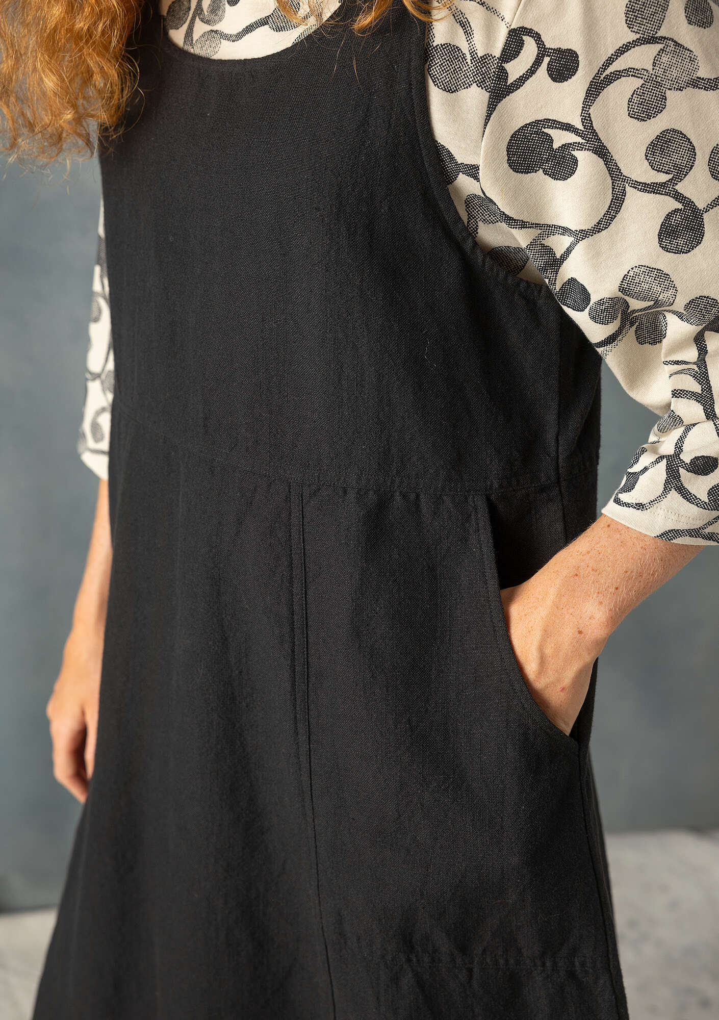 “Thessaloniki” woven organic cotton/linen pinafore dress