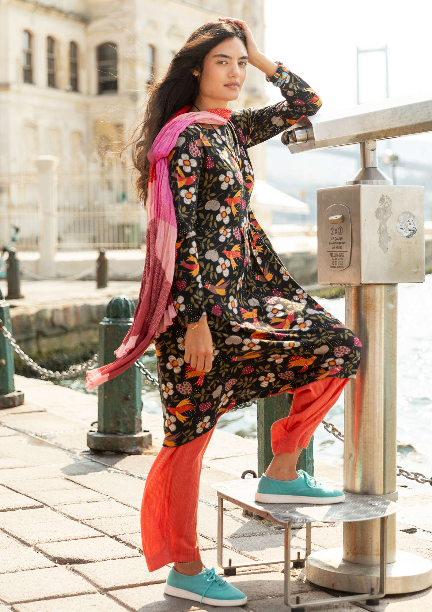 50% cotton/50% modal. The cotton is certified organic. TENCEL™ Modal is sourced from certified forests in closed-loop systems and produced by using renewable energy and by recovering the process chemicals. The dyeing and printing processes are certified. Delicate wash at 40°. Gently stretch to length while damp. Do not tumble dry. 3-4% shrinkage. Made in Sandanski, Bulgaria.