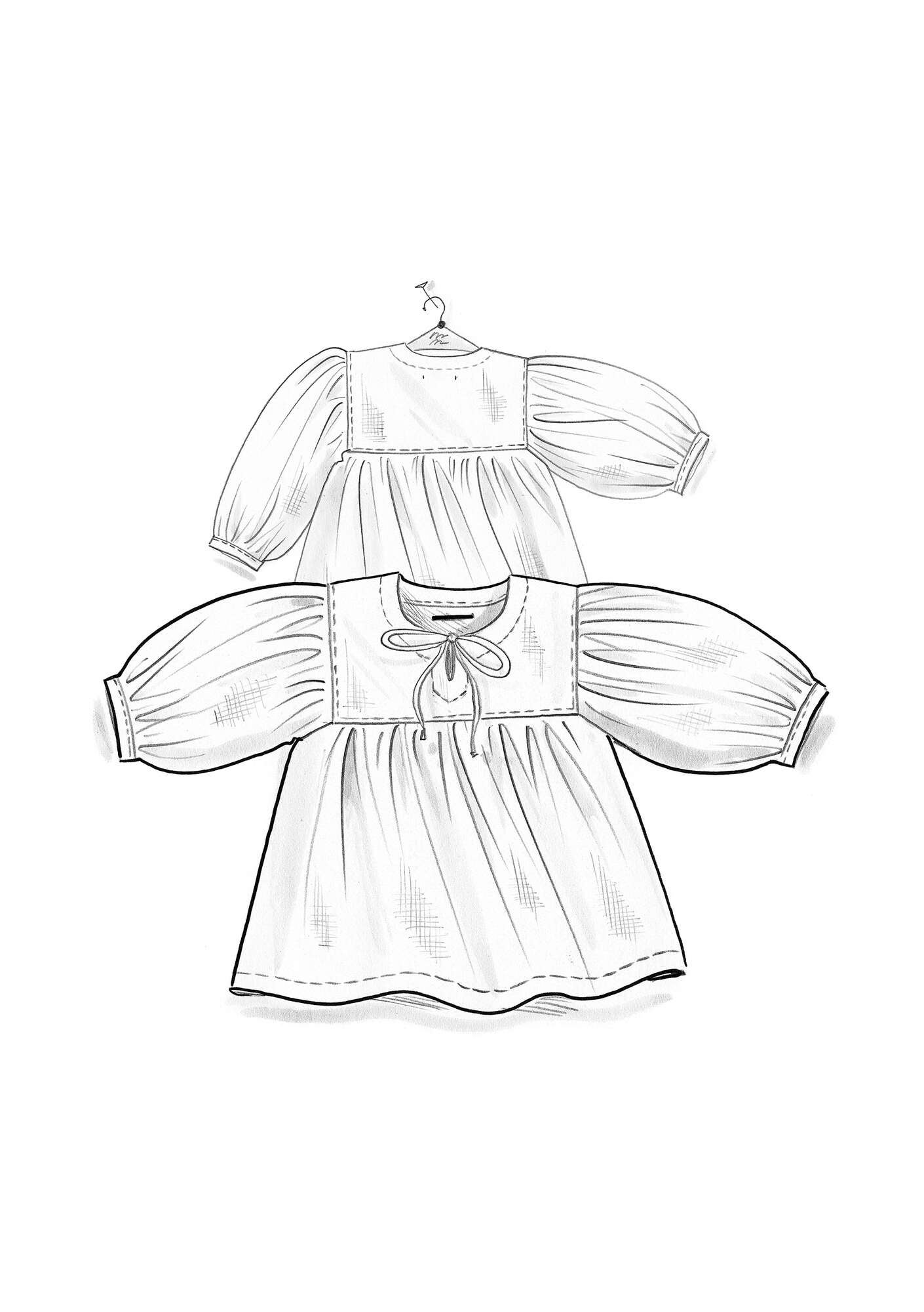 • Whimsical style with a generous fit. Yoke with front slit and tie. Puff sleeves that hit just below the elbow. Comes in solid colours and with a yarn-dyed check print.