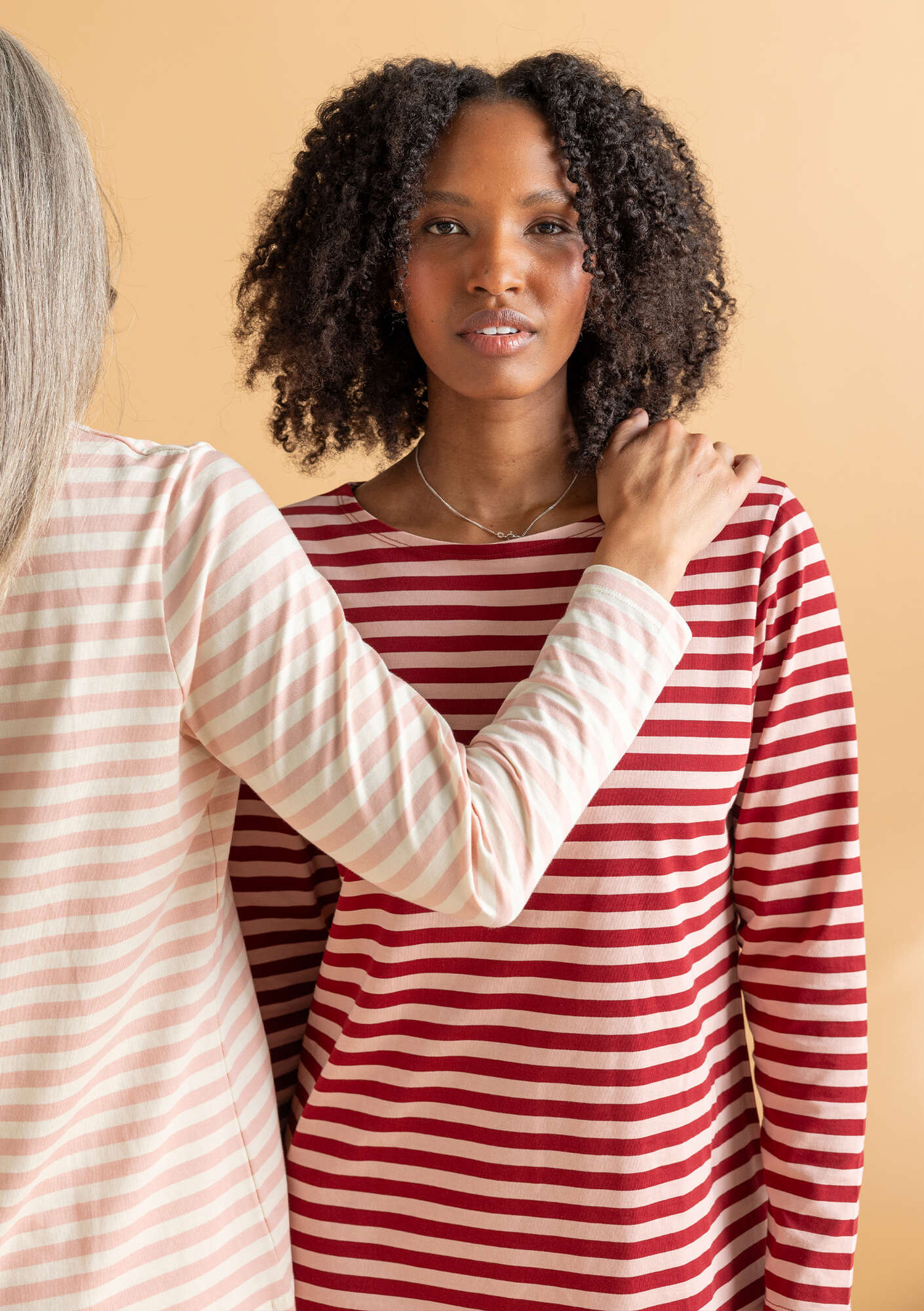• Yarn-dyed stripes in our classic, simple style. Full-length sleeves and a boat neckline.