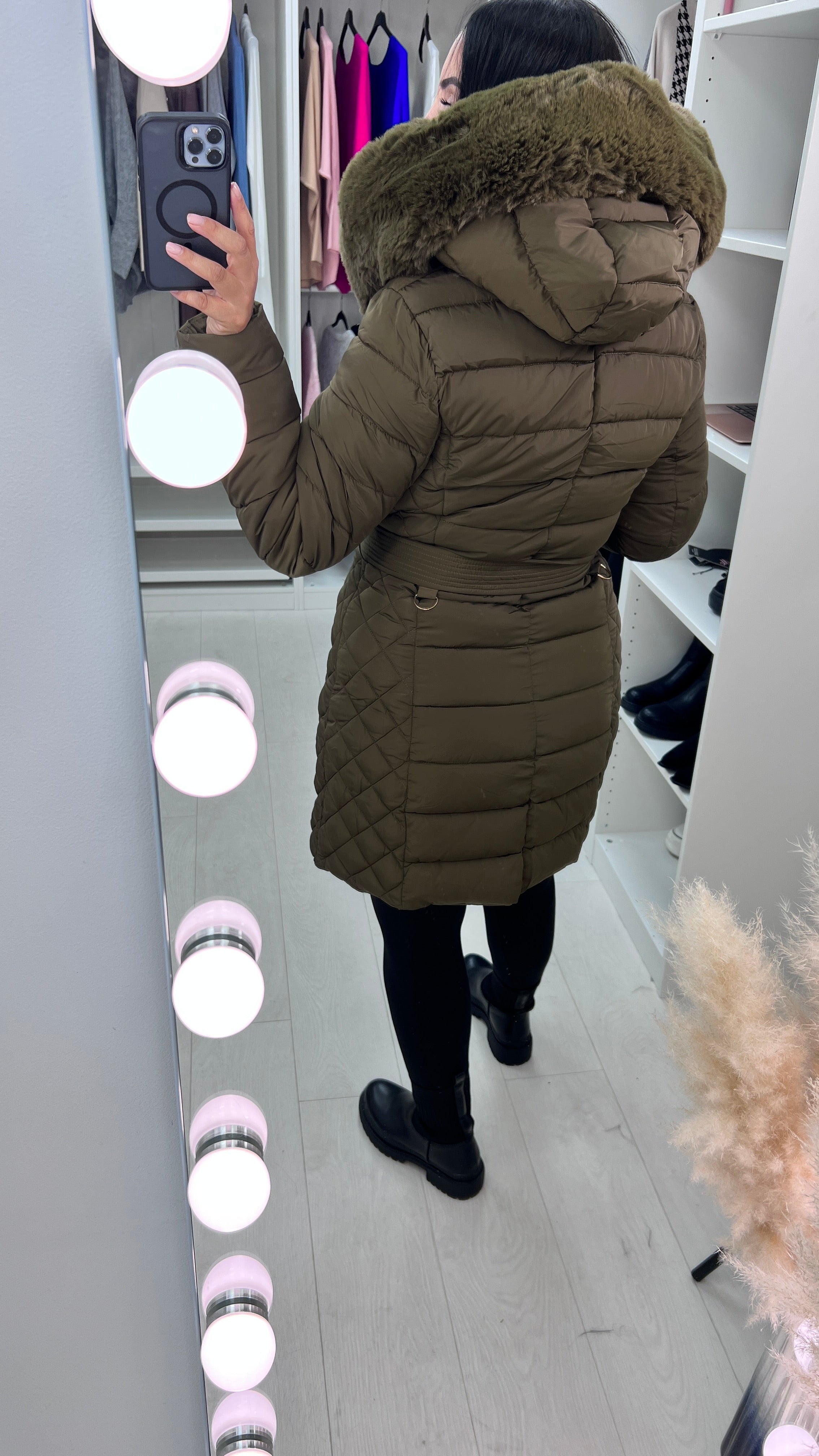 Adalee Khaki Faux Fur Hood Coat