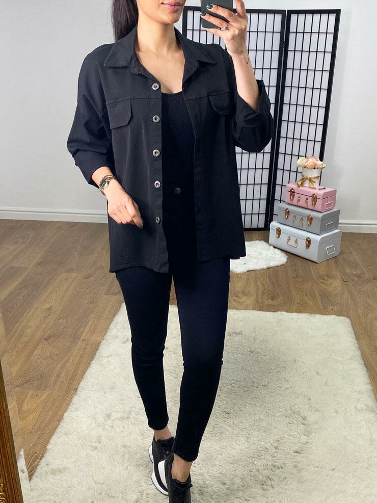 Adrienne Plain Button Front Short Shacket