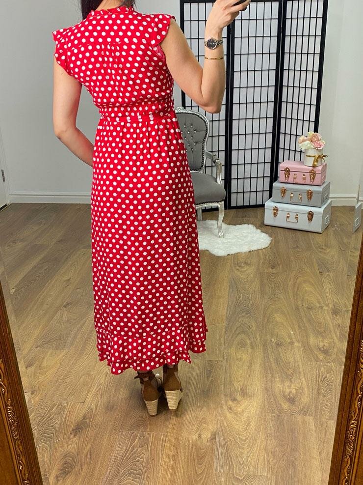 Altonio Red Polka Dot Tie Waist Maxi Dress