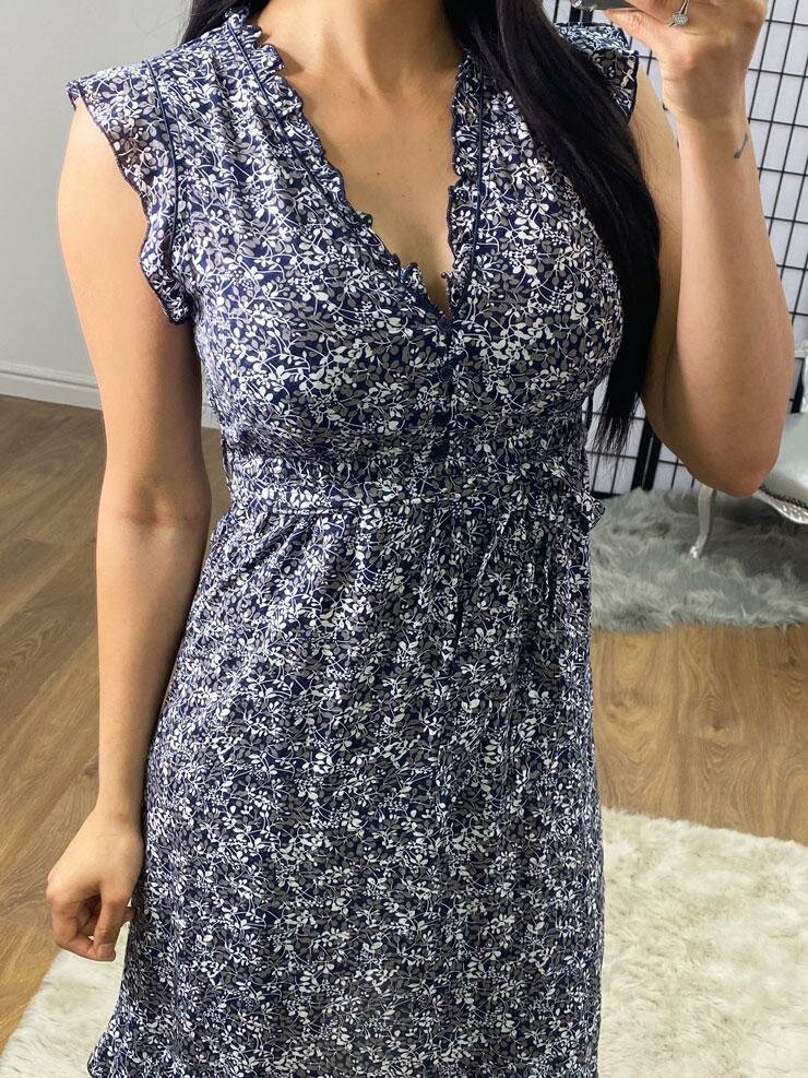 Apoline Paisley Navy Frill Tie Waist Dress