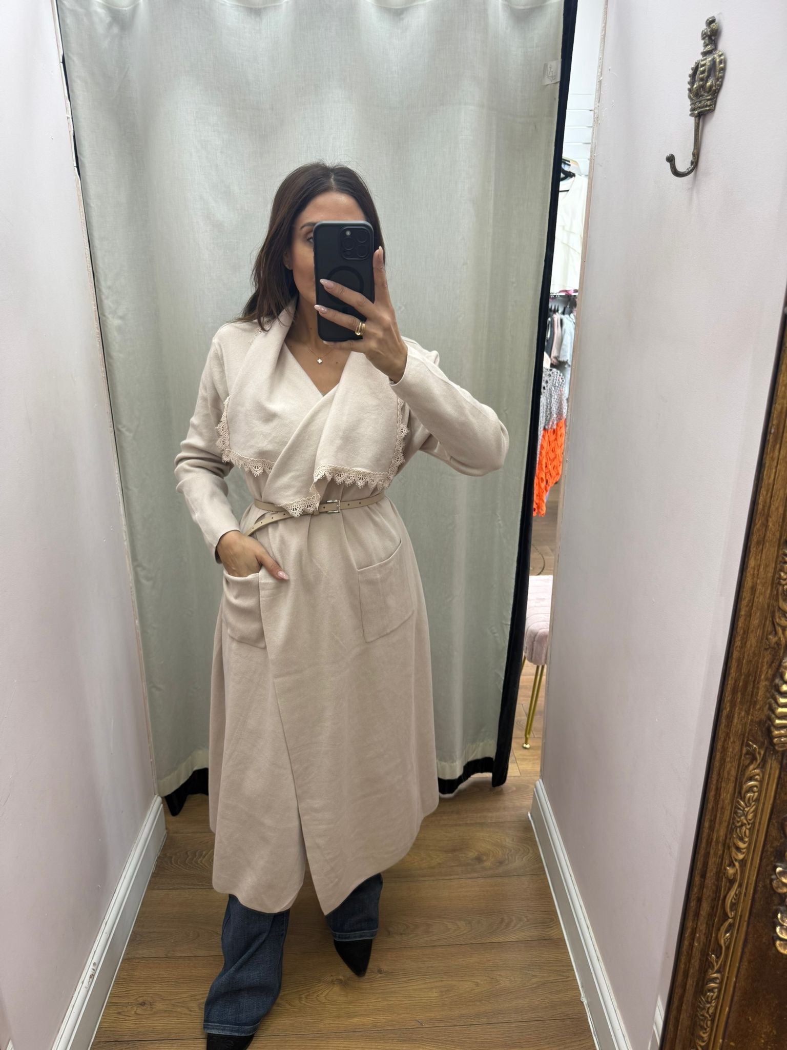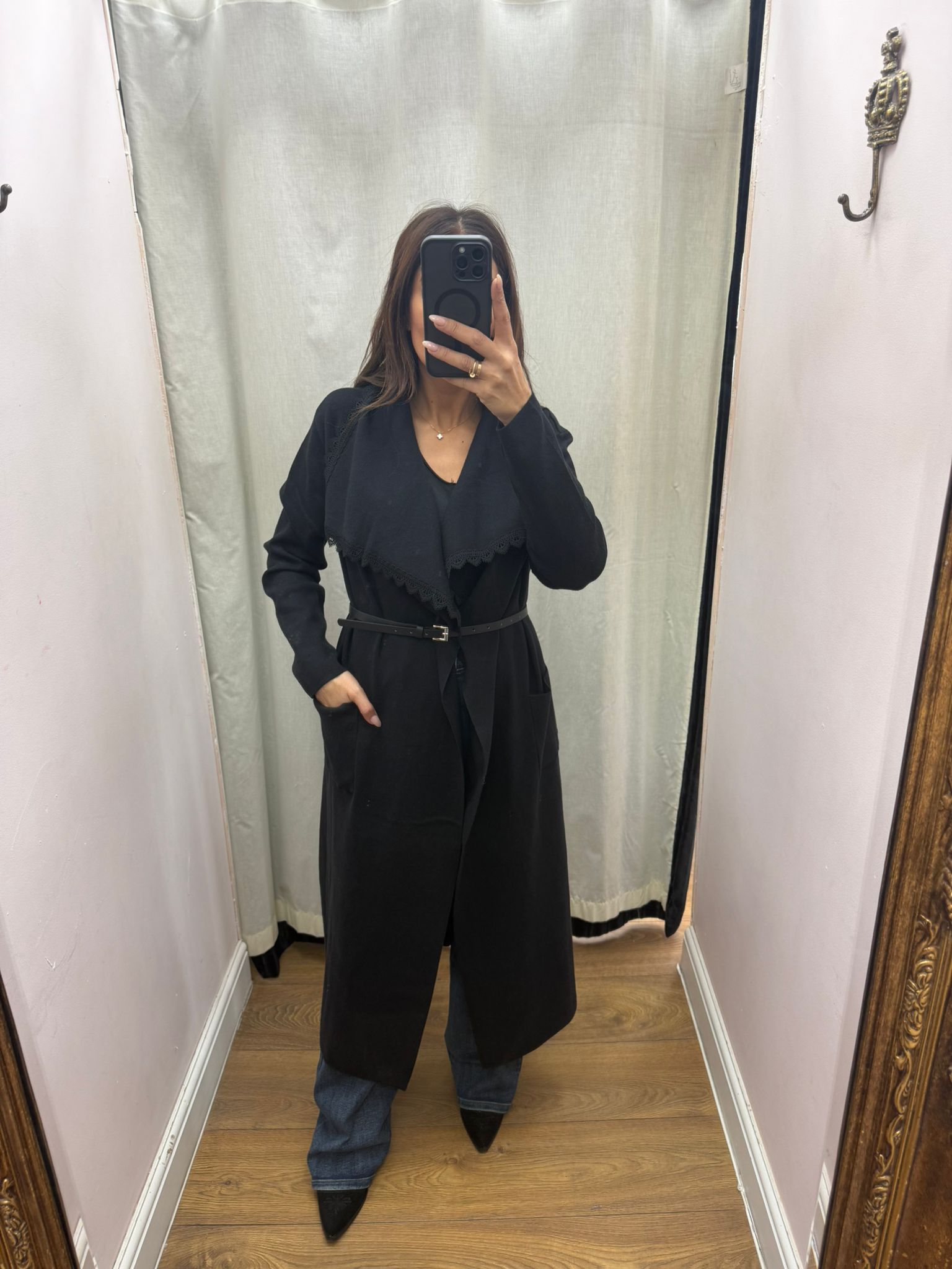Ashleigh Plain Lace Trim Waterfall Cardi Jacket