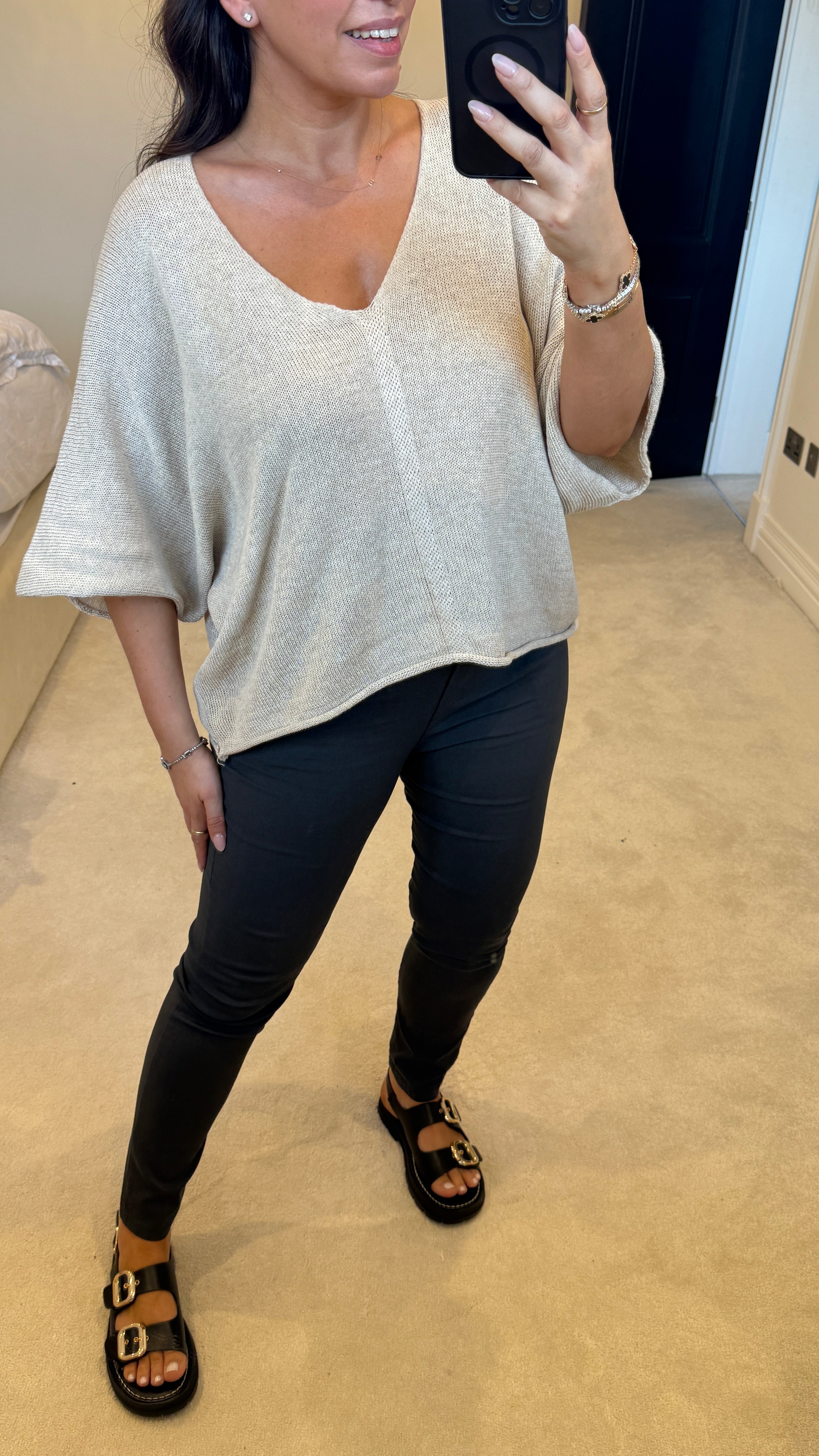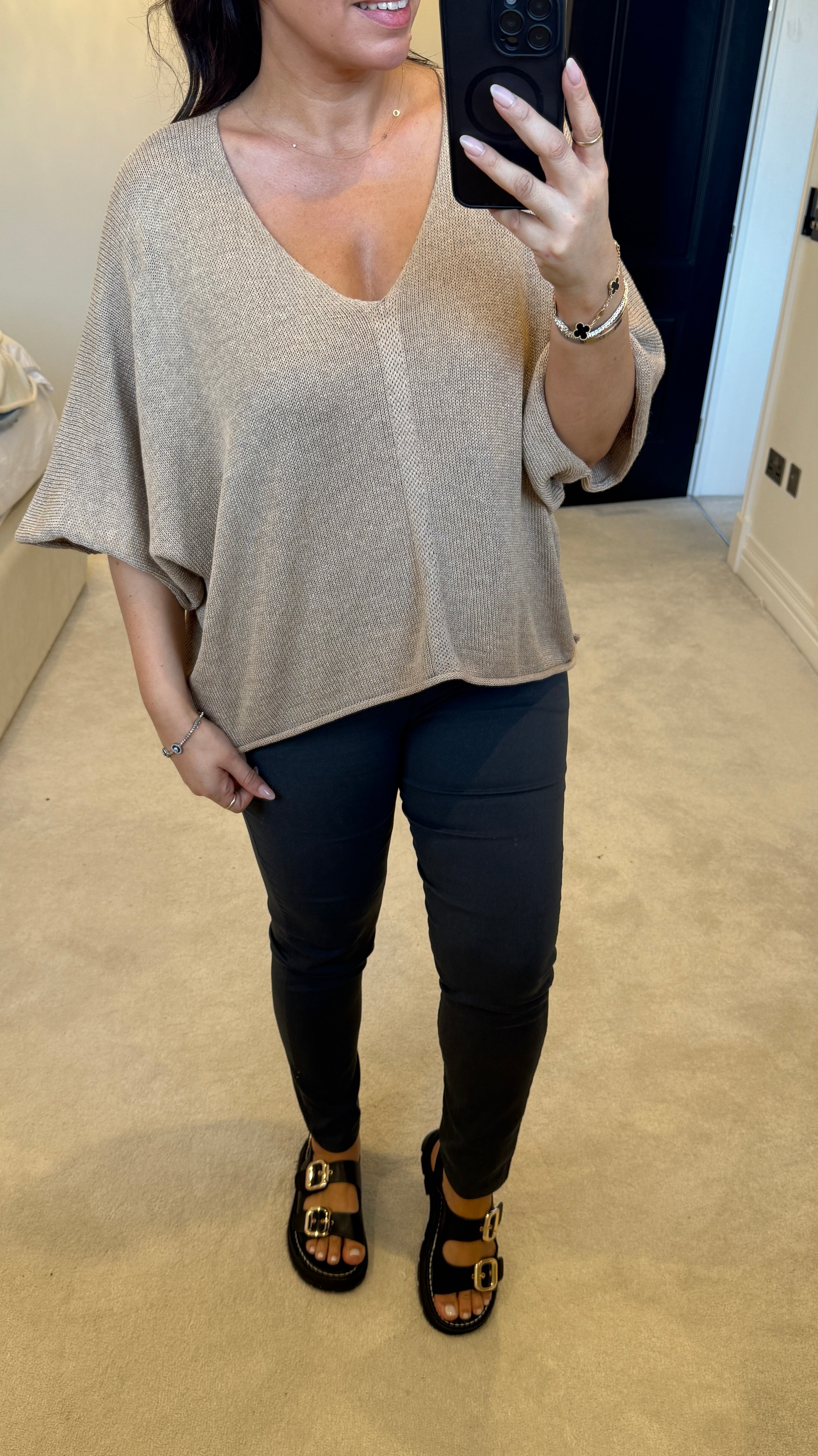 Audrey Plain V Neck Loose Fit Thin Knit Top