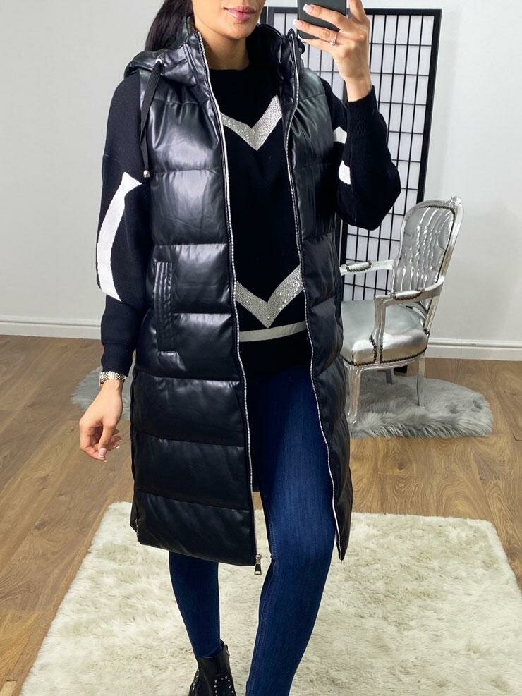 Barlie Black Faux Leather Hooded Longline Gilet