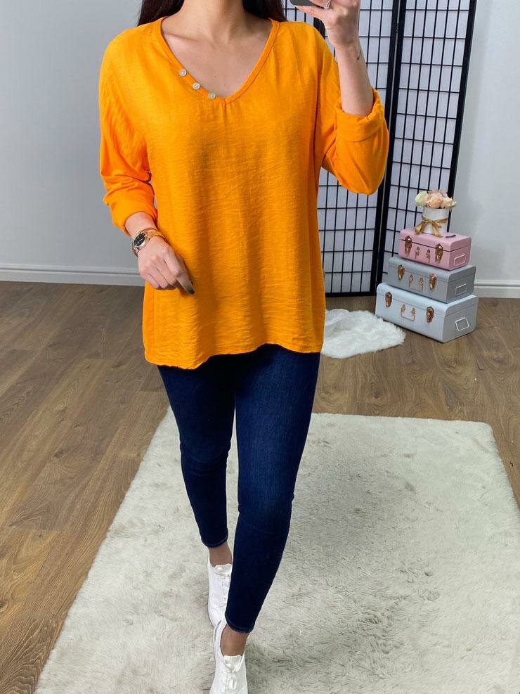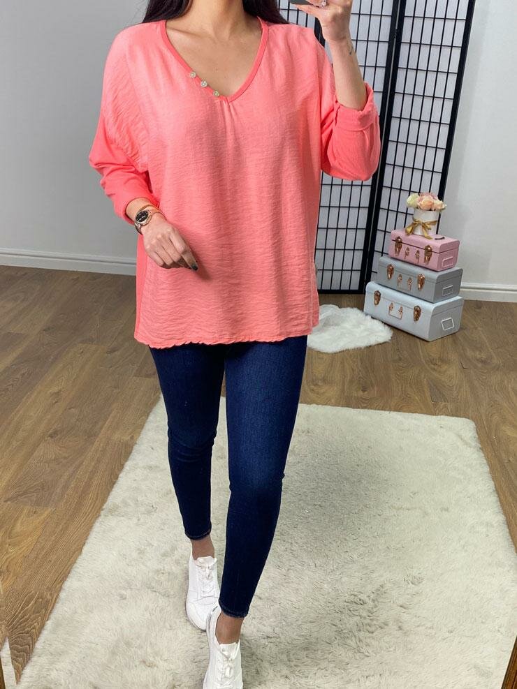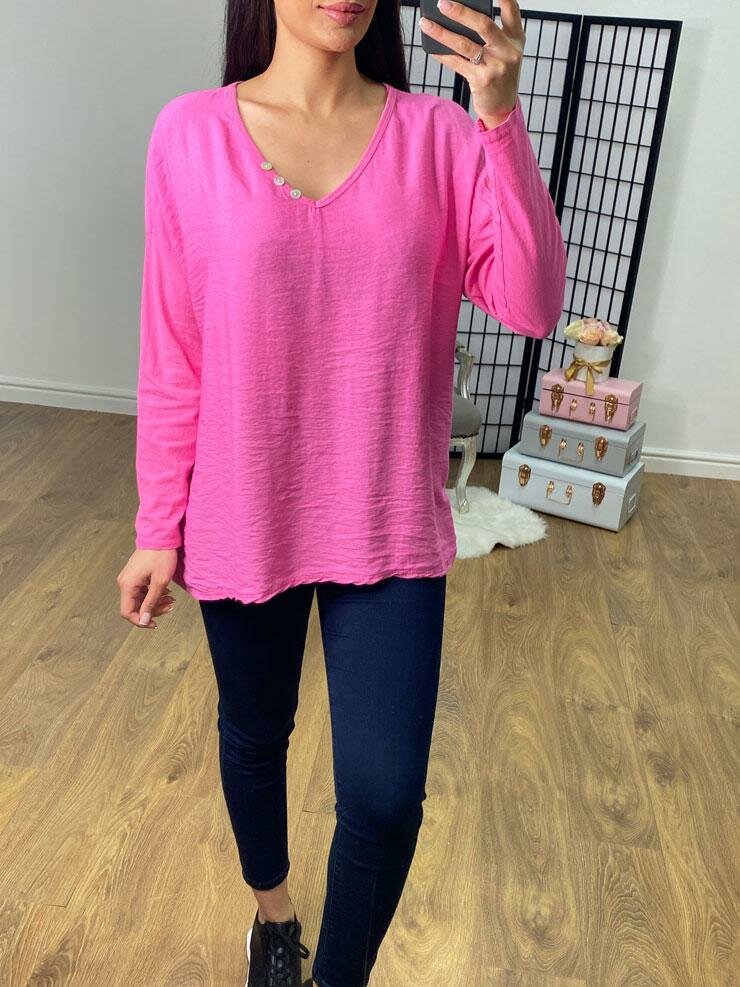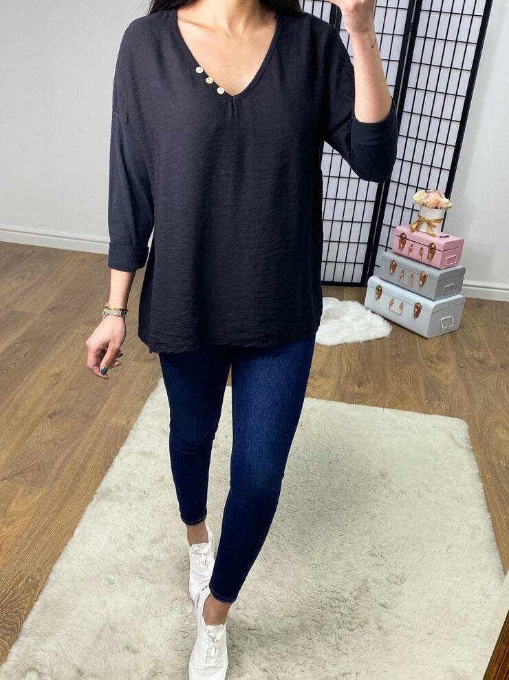 Baxter Button Detail V Neck Basic Top