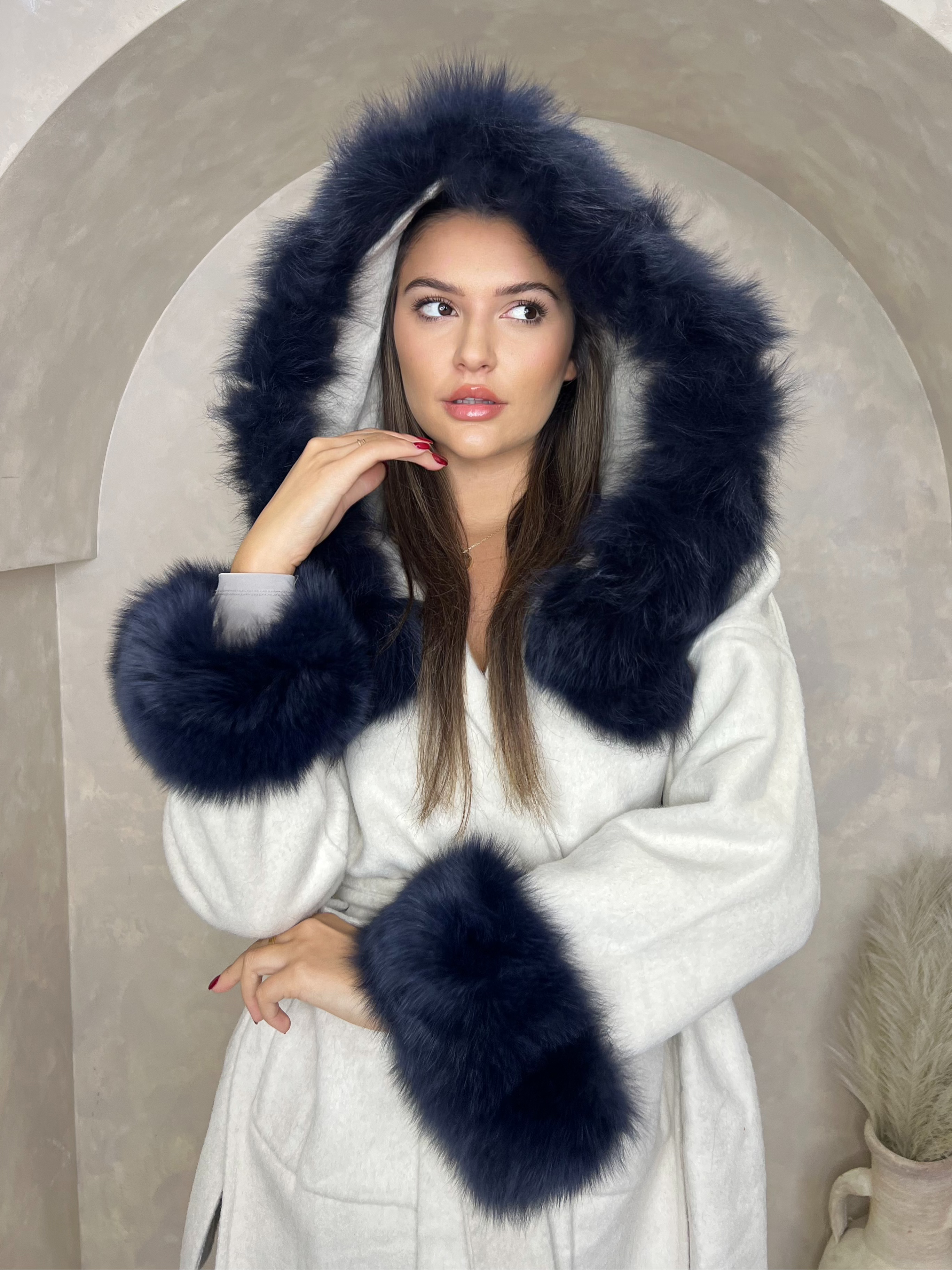 Elevate your winter style with our Belted Fox Fur coat. Designed in mid length, it features a flattering belted waist, Fox fur trim on the hood and cuffs for added warmth. Stay chic and cozy in this must-have cold weather essential.