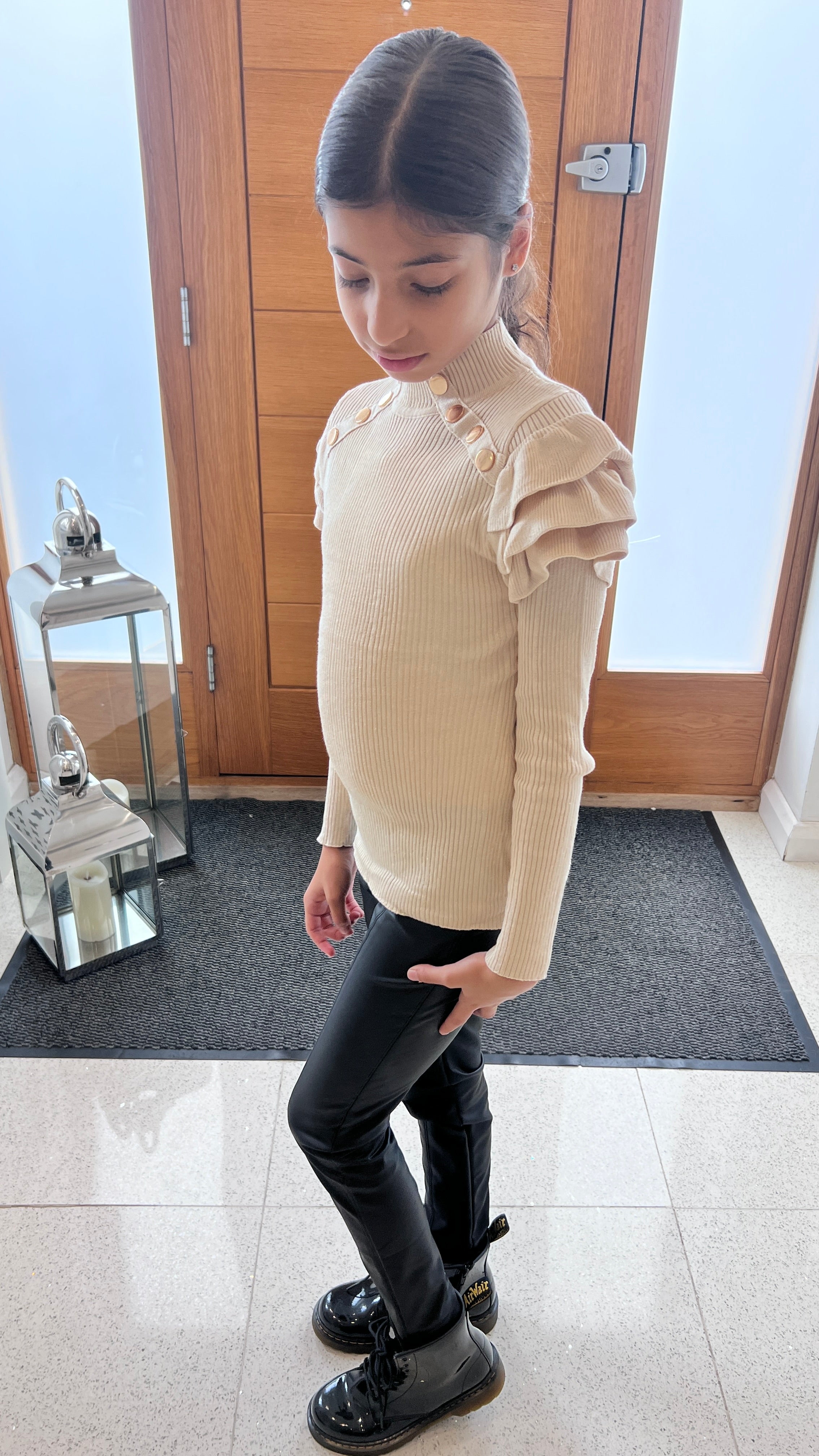 Bella Mia Kids High Neck Frill Shoulder Top