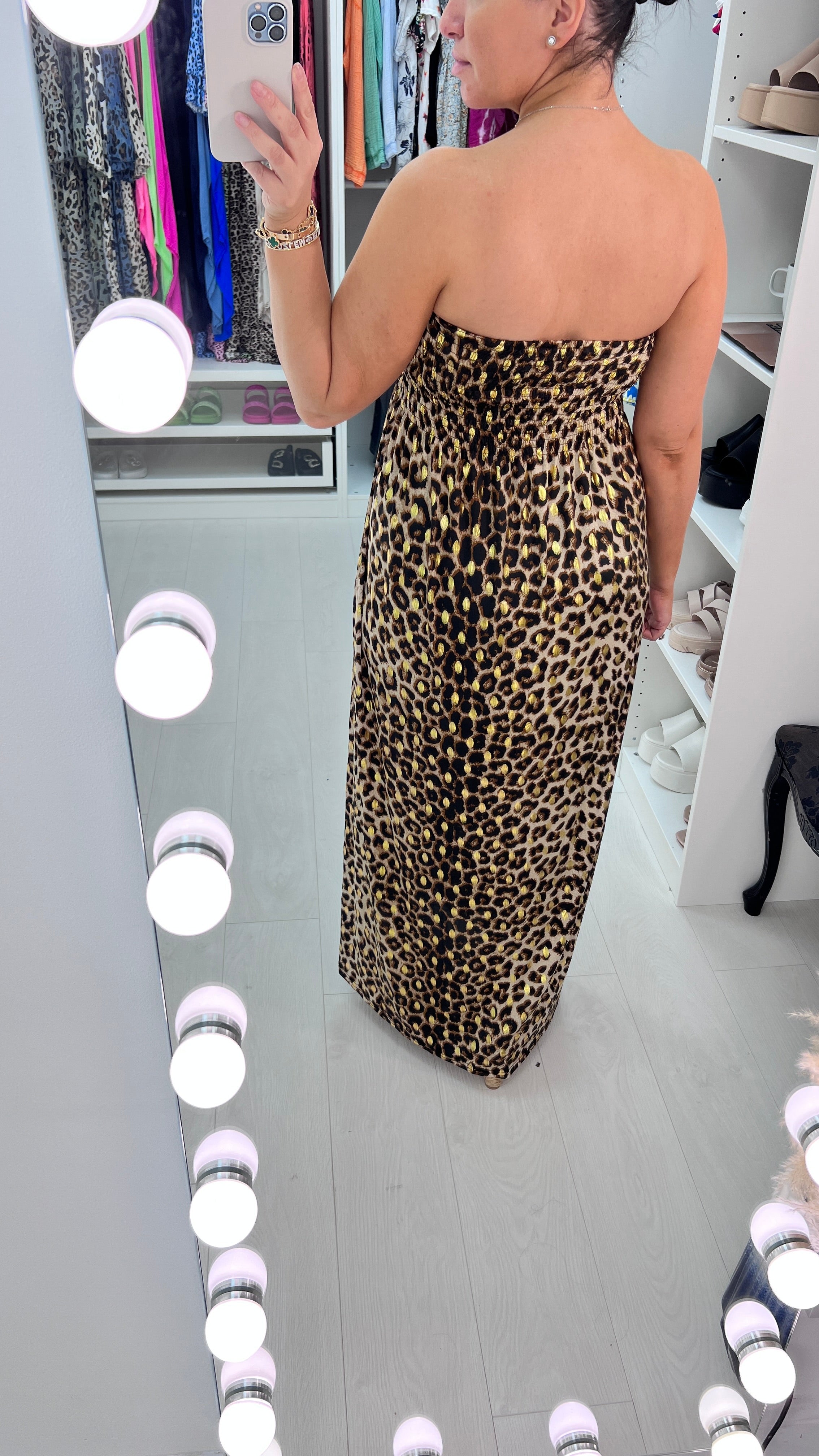 Bergamo Tan Leopard Print Elasticated Bust Maxi Dress