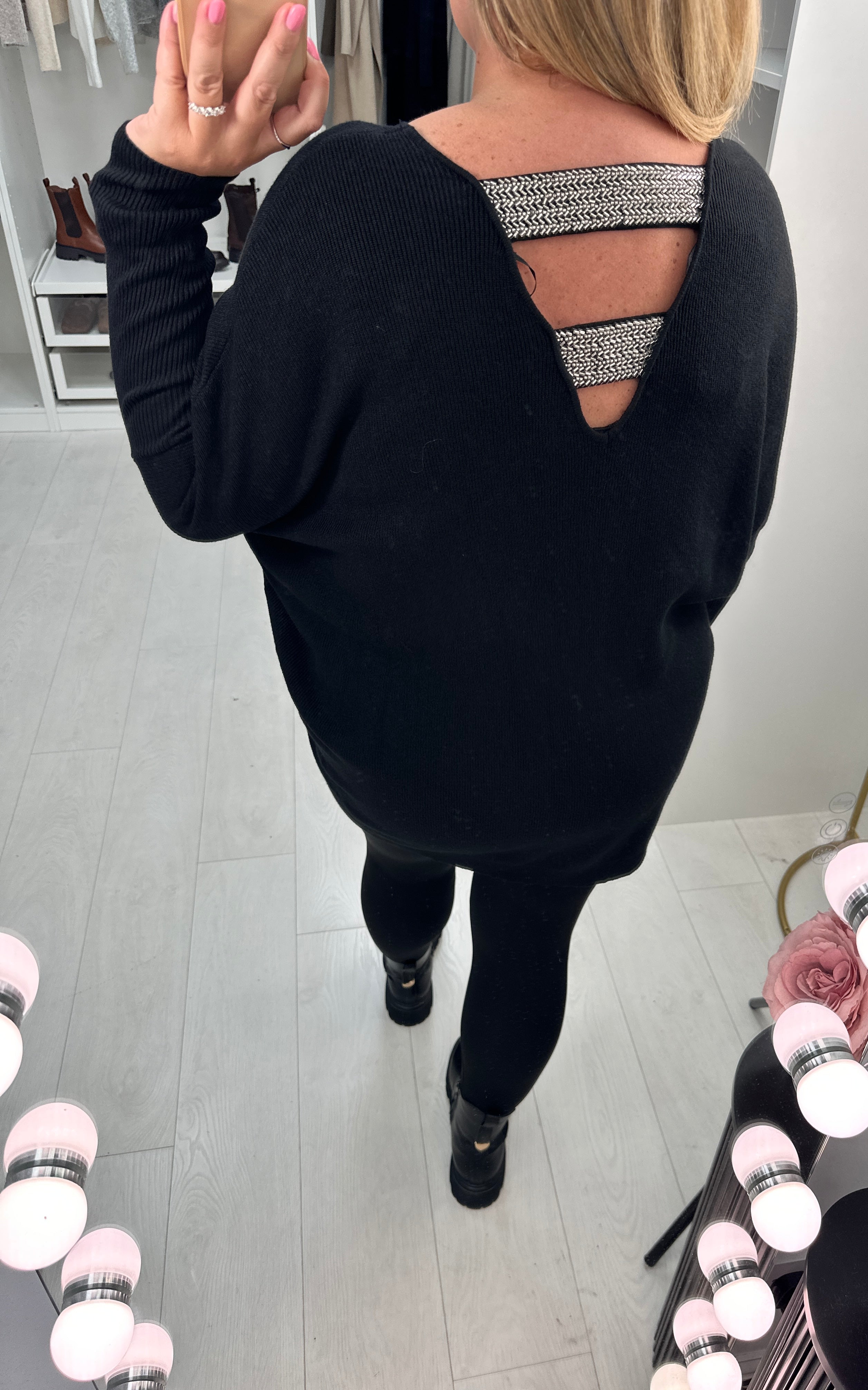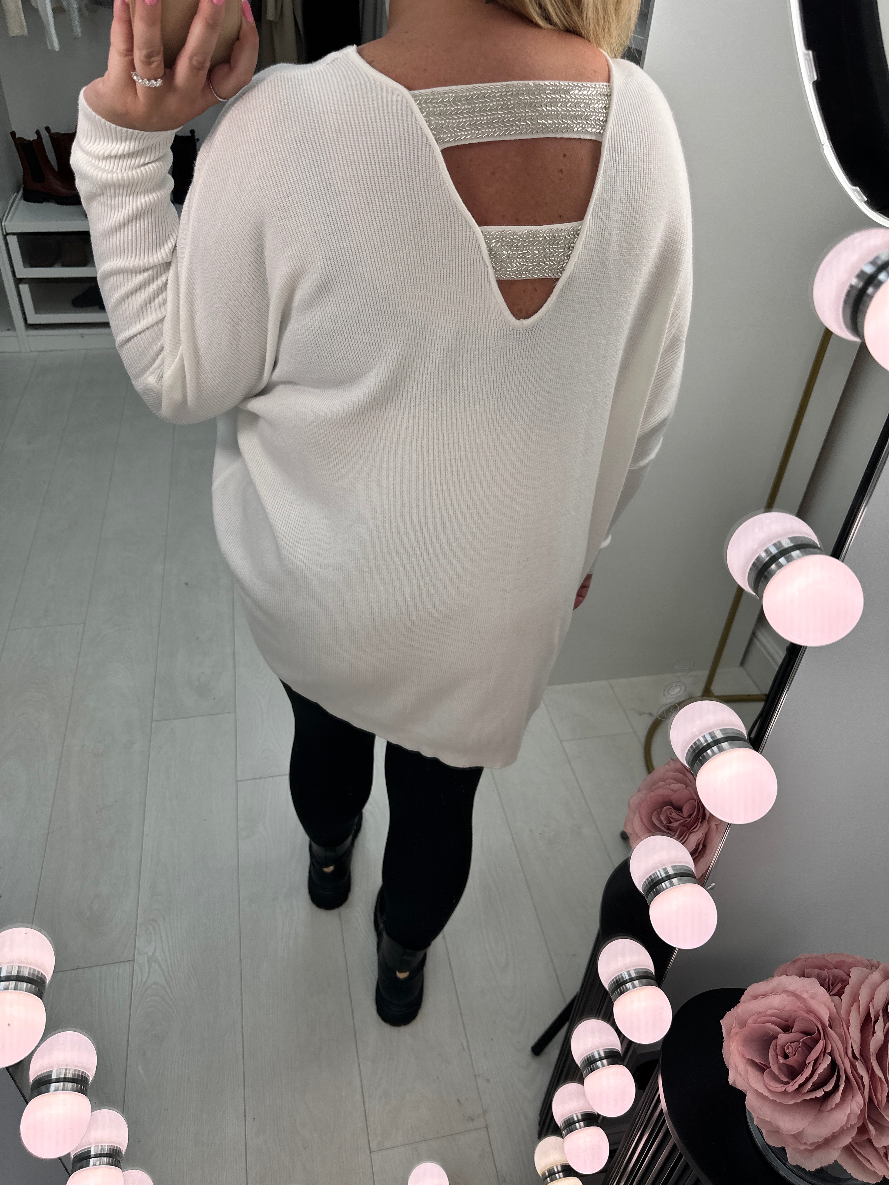 Bethan Plain Embellished Cut Out Back Jumper