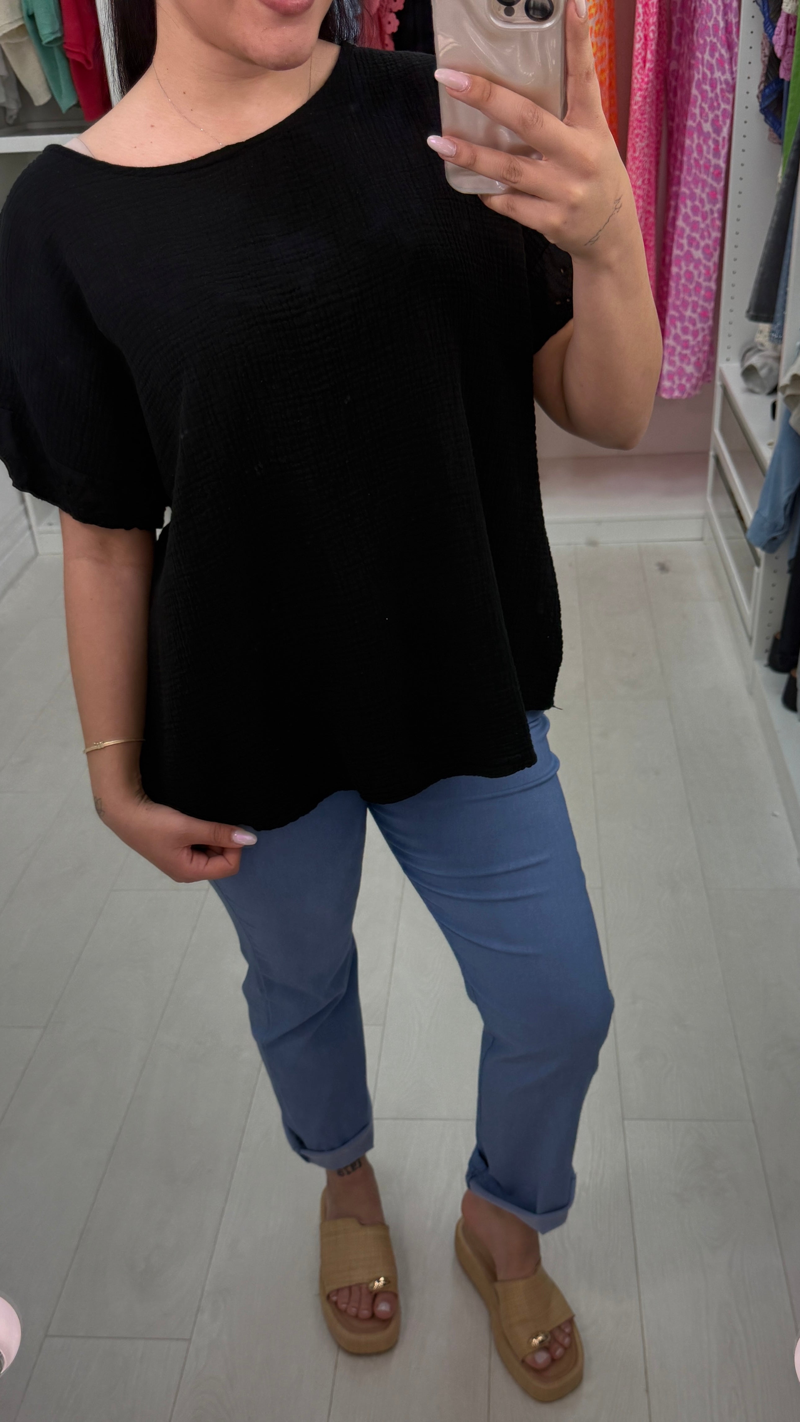 Biba Plain Broderie Anglaise Detailed Cheesecloth Top