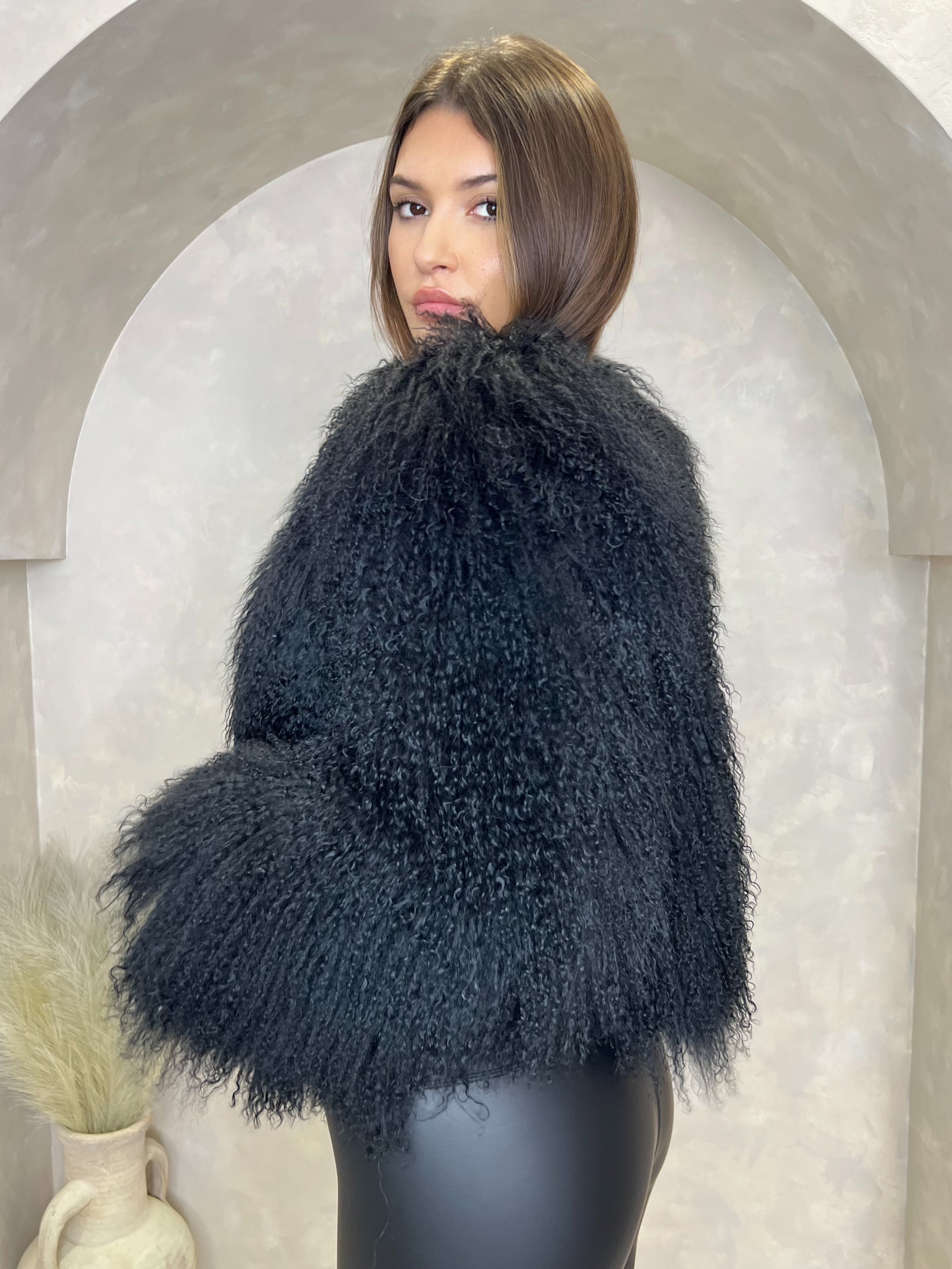 Black Luxury Mongolian Lamb Fur Coat