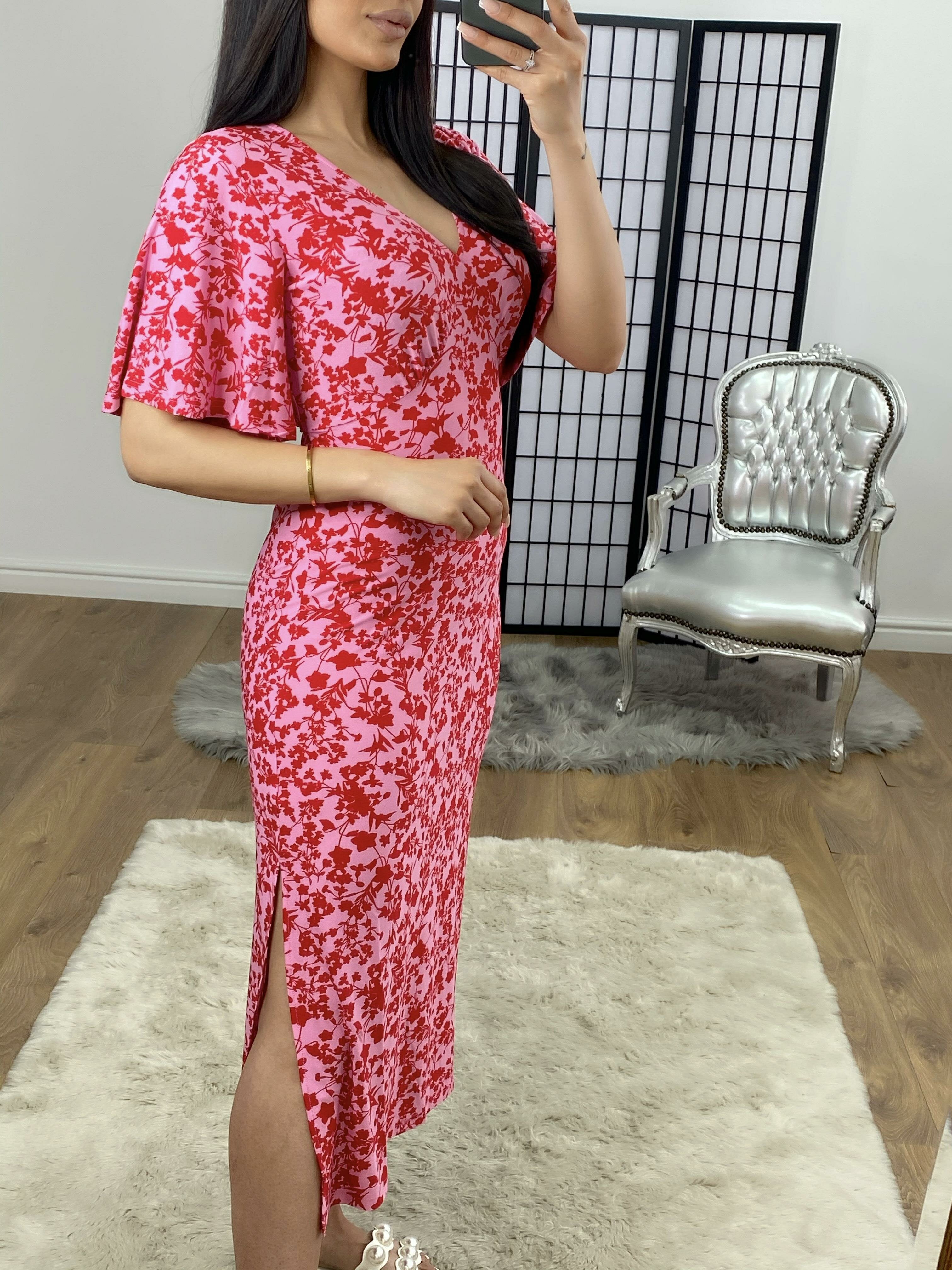 Breanna Pink Tie Waist Floaty V-neck Swing Dress