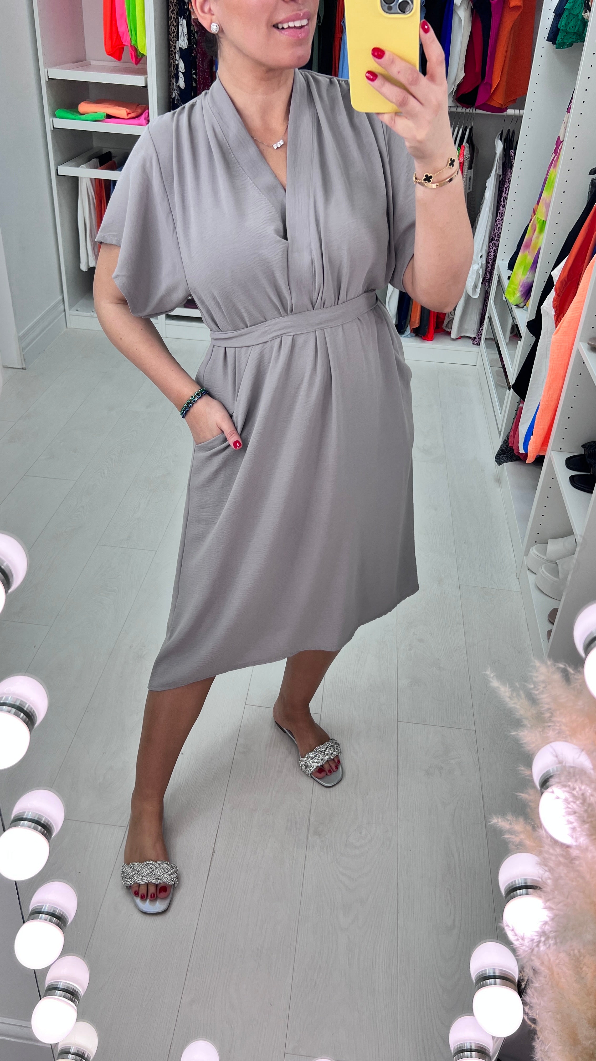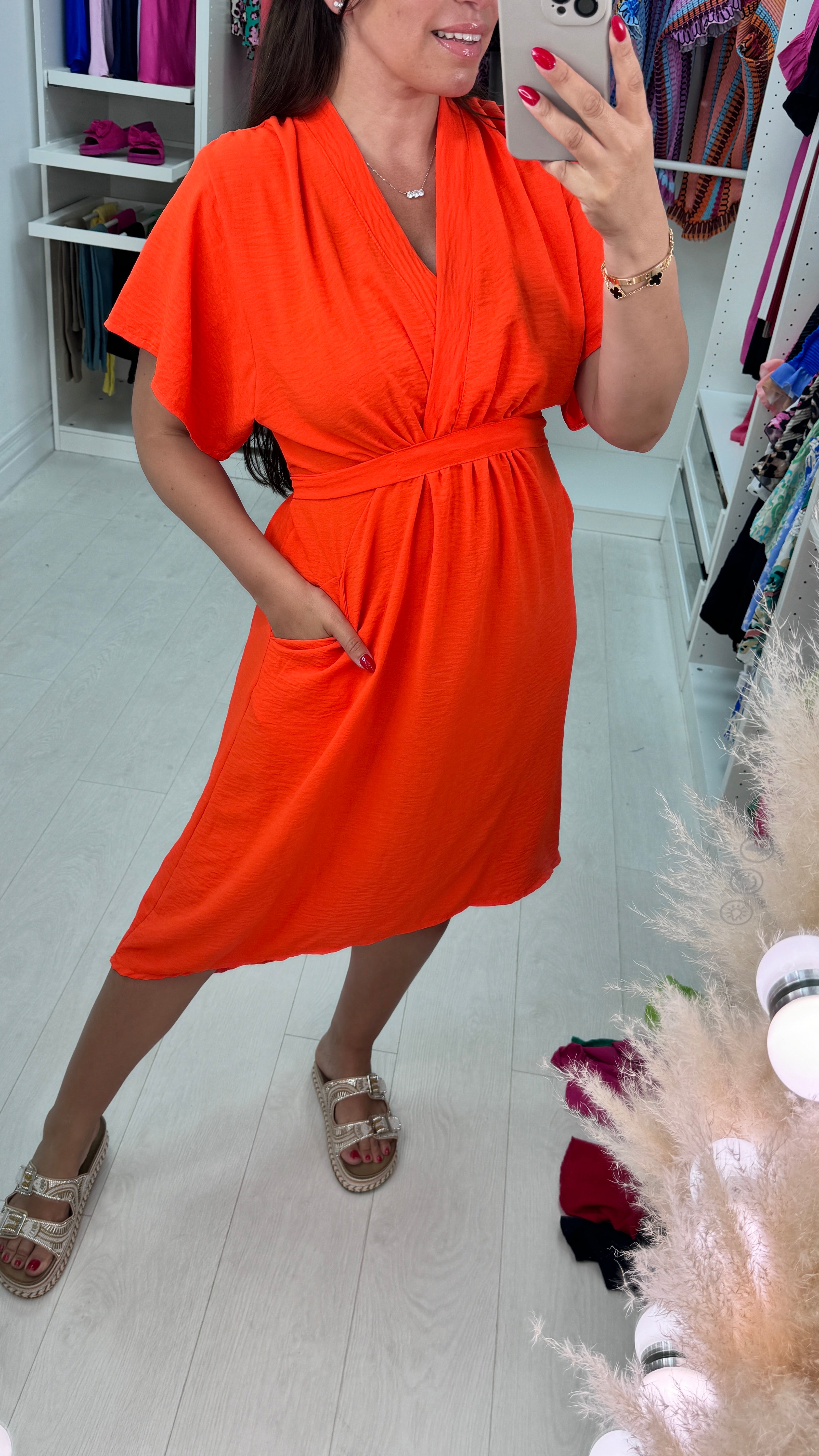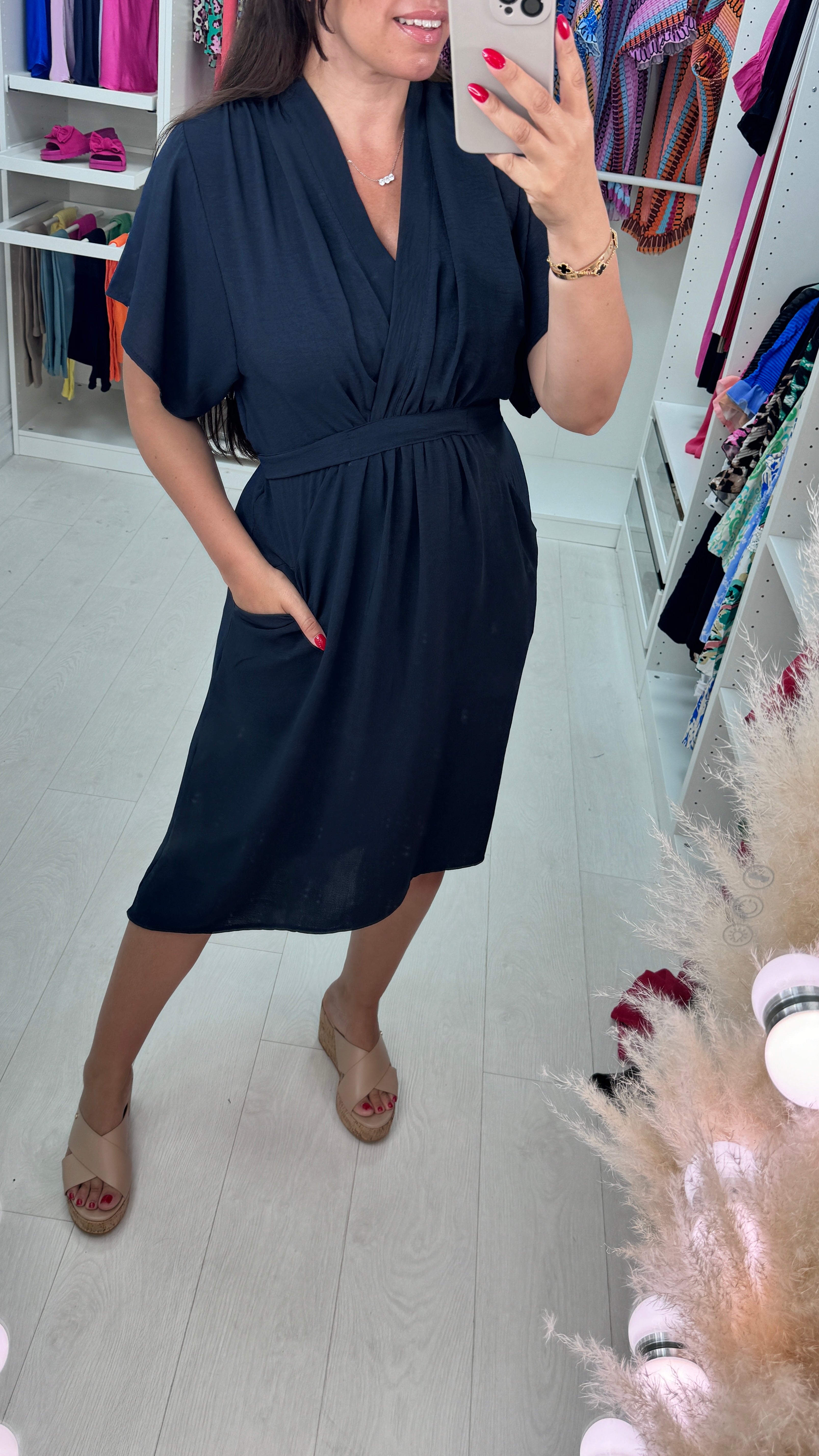 Clarissa Wrap Effect Pocket Shift Dress