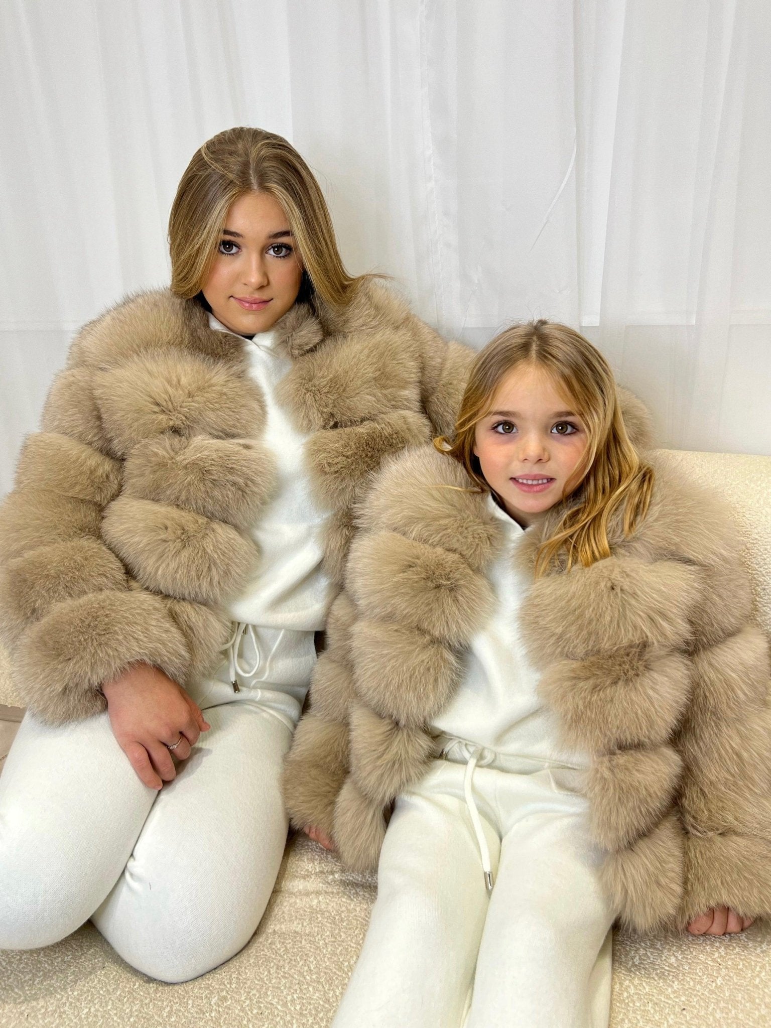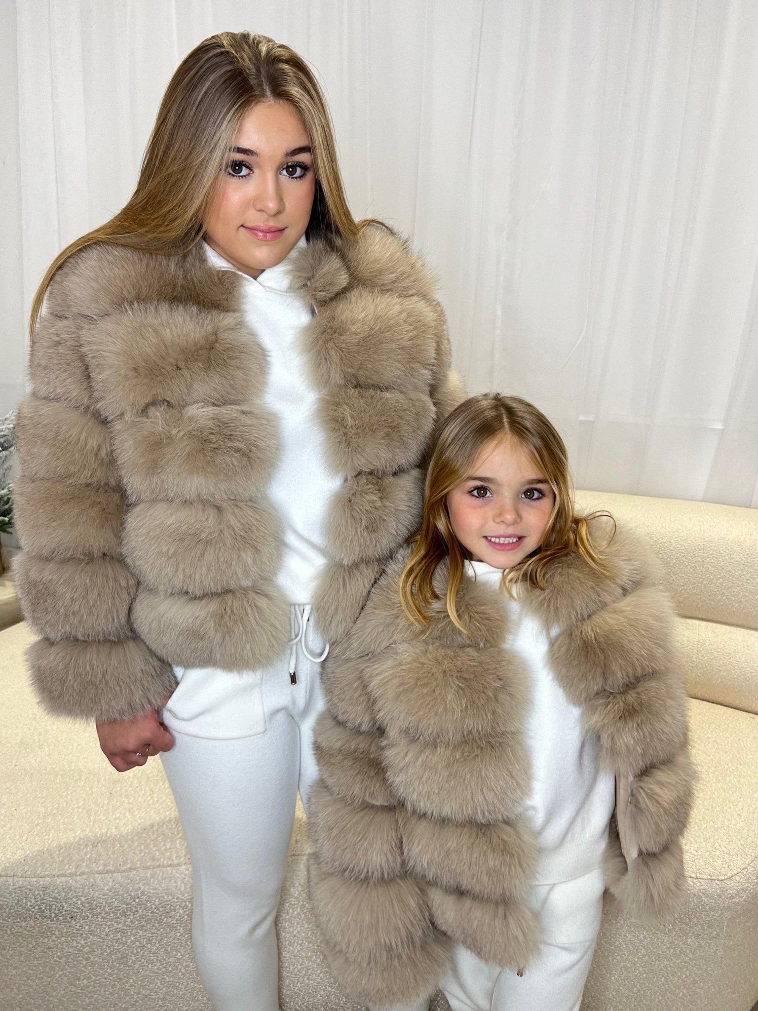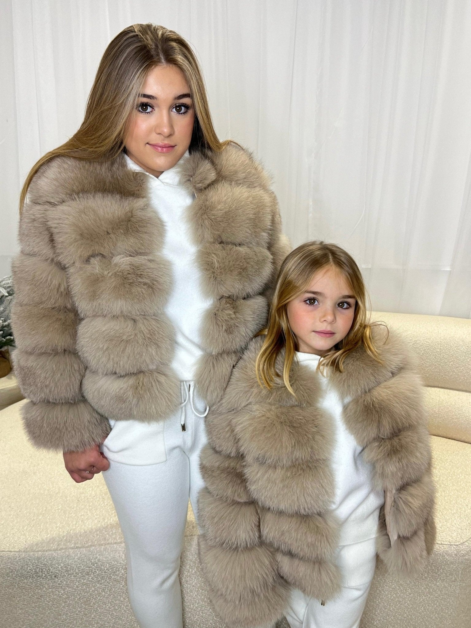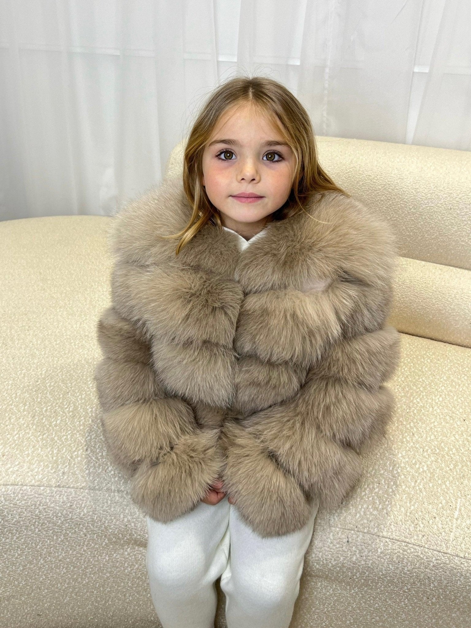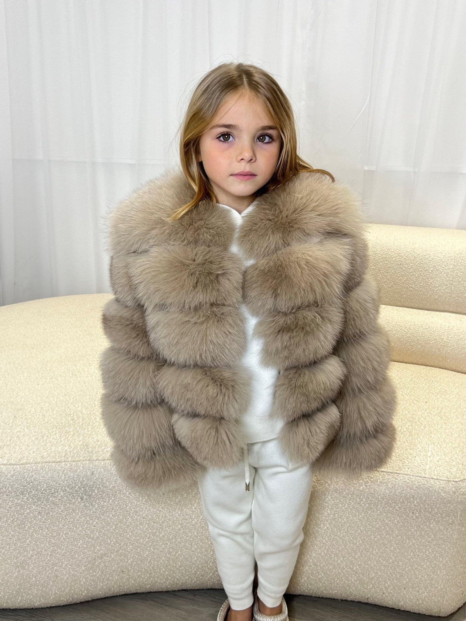 This Kids Dark Beige Luxury Fur Coat is sure to keep your little one warm and stylish. Made with luxurious fur, this coat is perfect for any occasion. Its soft and comfortable material will make your child feel like a million dollars while keeping them cozy during the colder months.