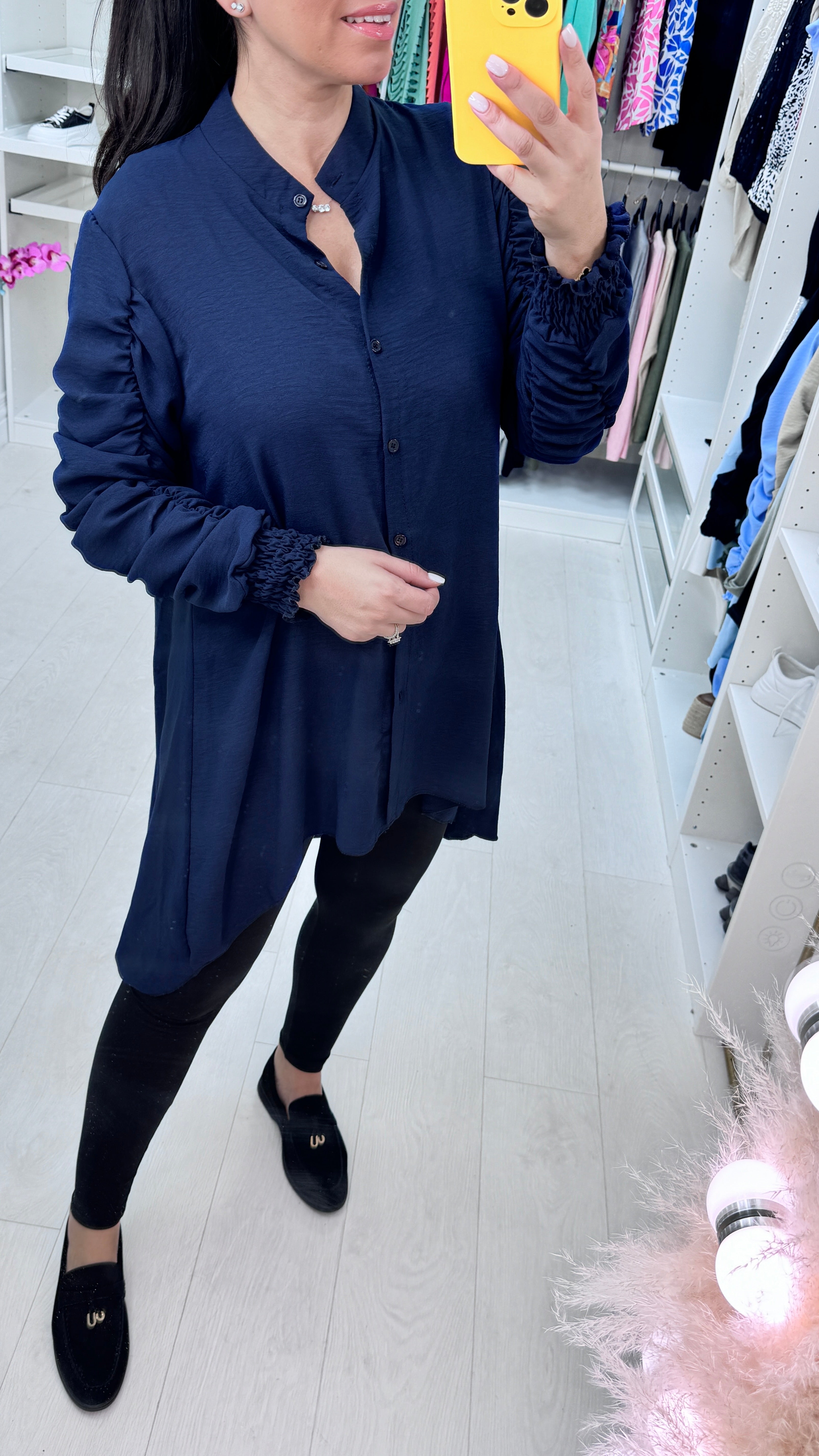 Cora Dipped Hem Ruched Sleeve Shirt