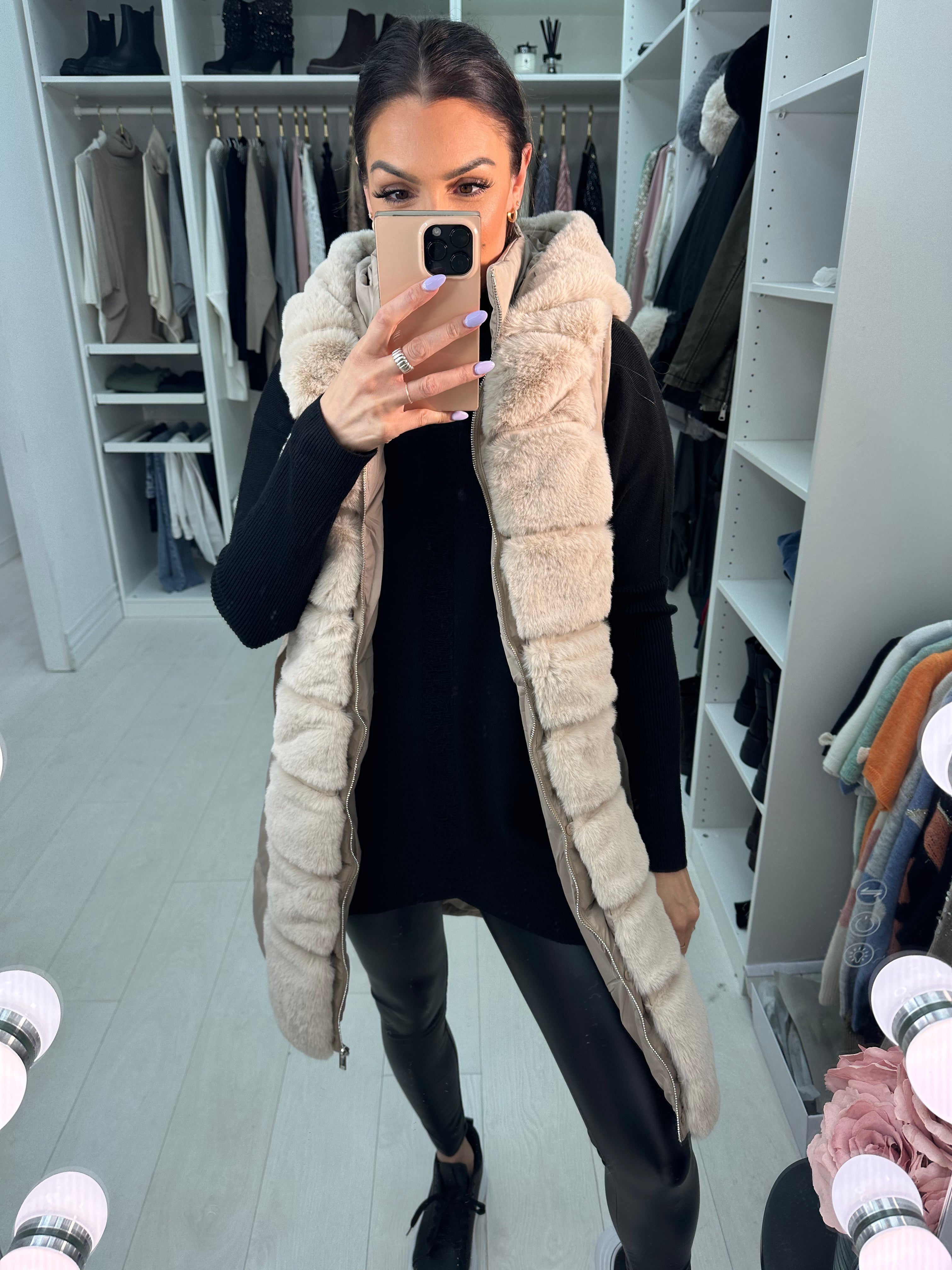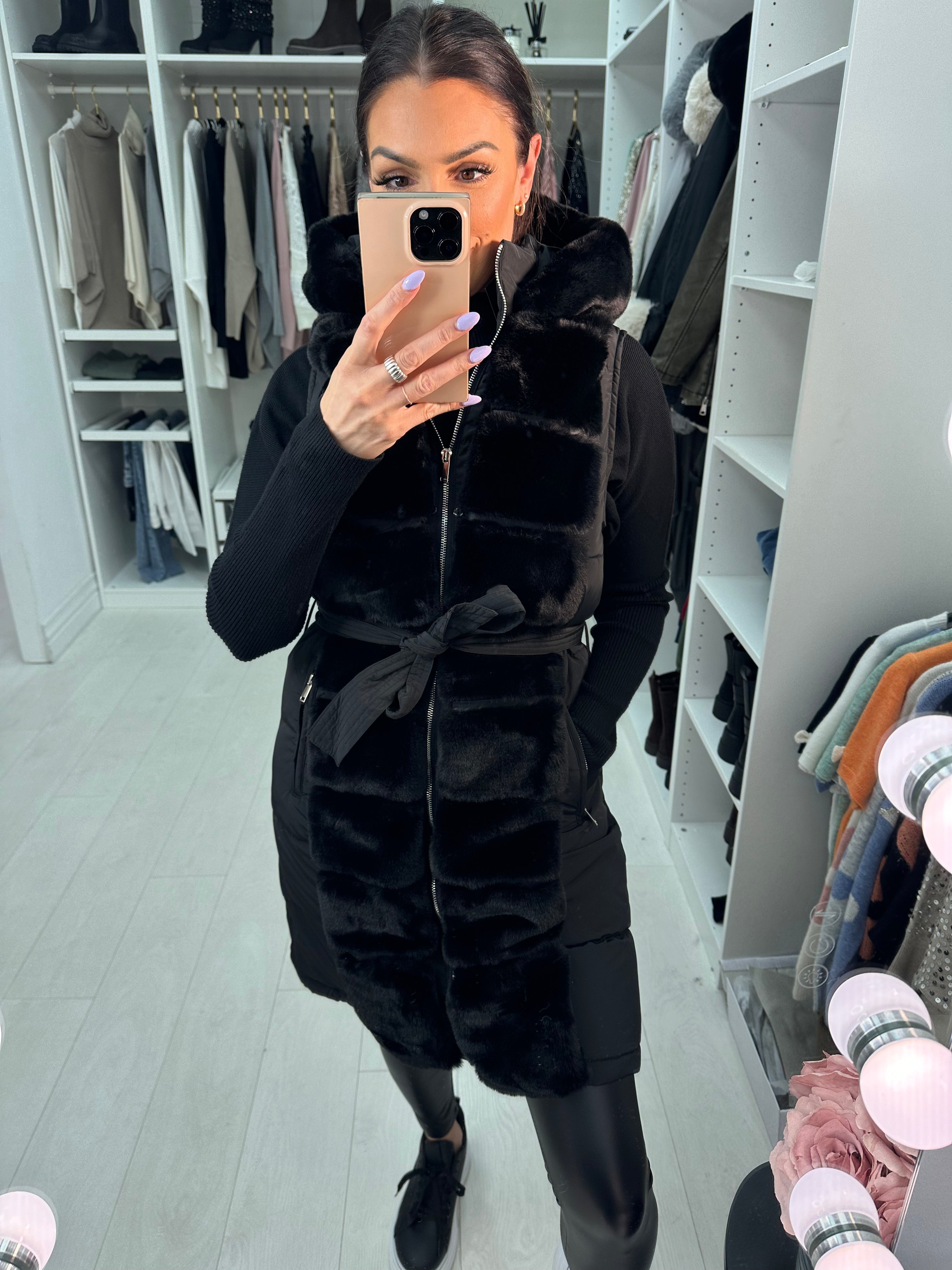 Cynthia Faux Fur Padded Belted Gilet