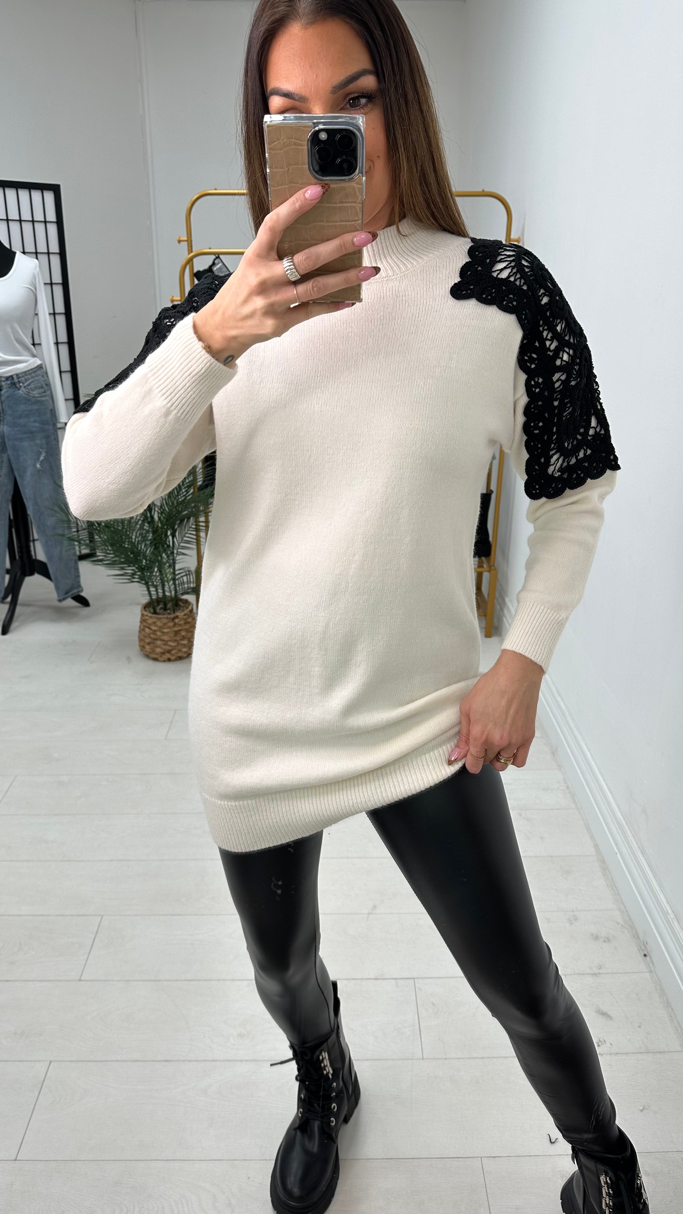 Danica Crochet Shoulder Longline Knit Jumper