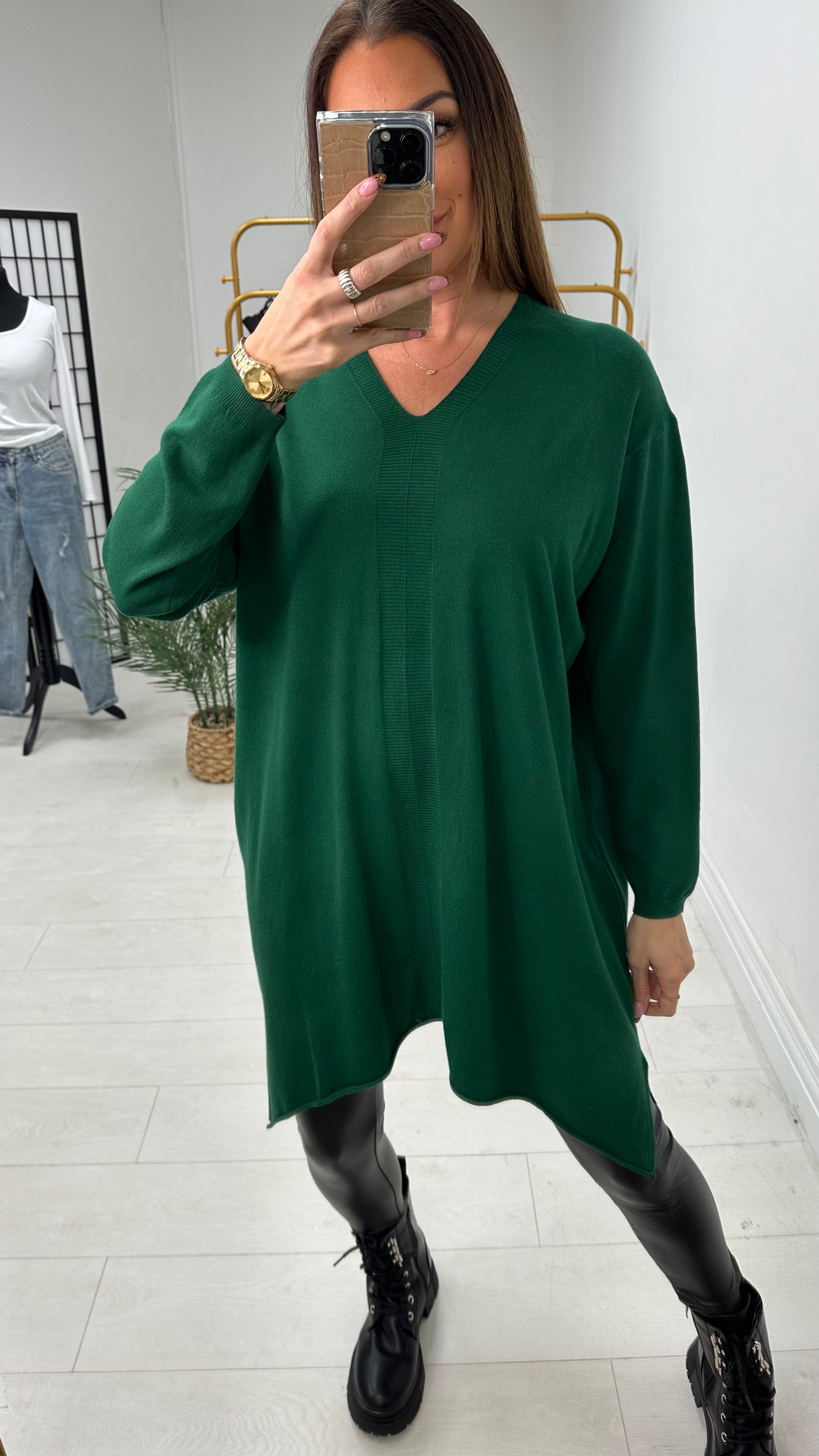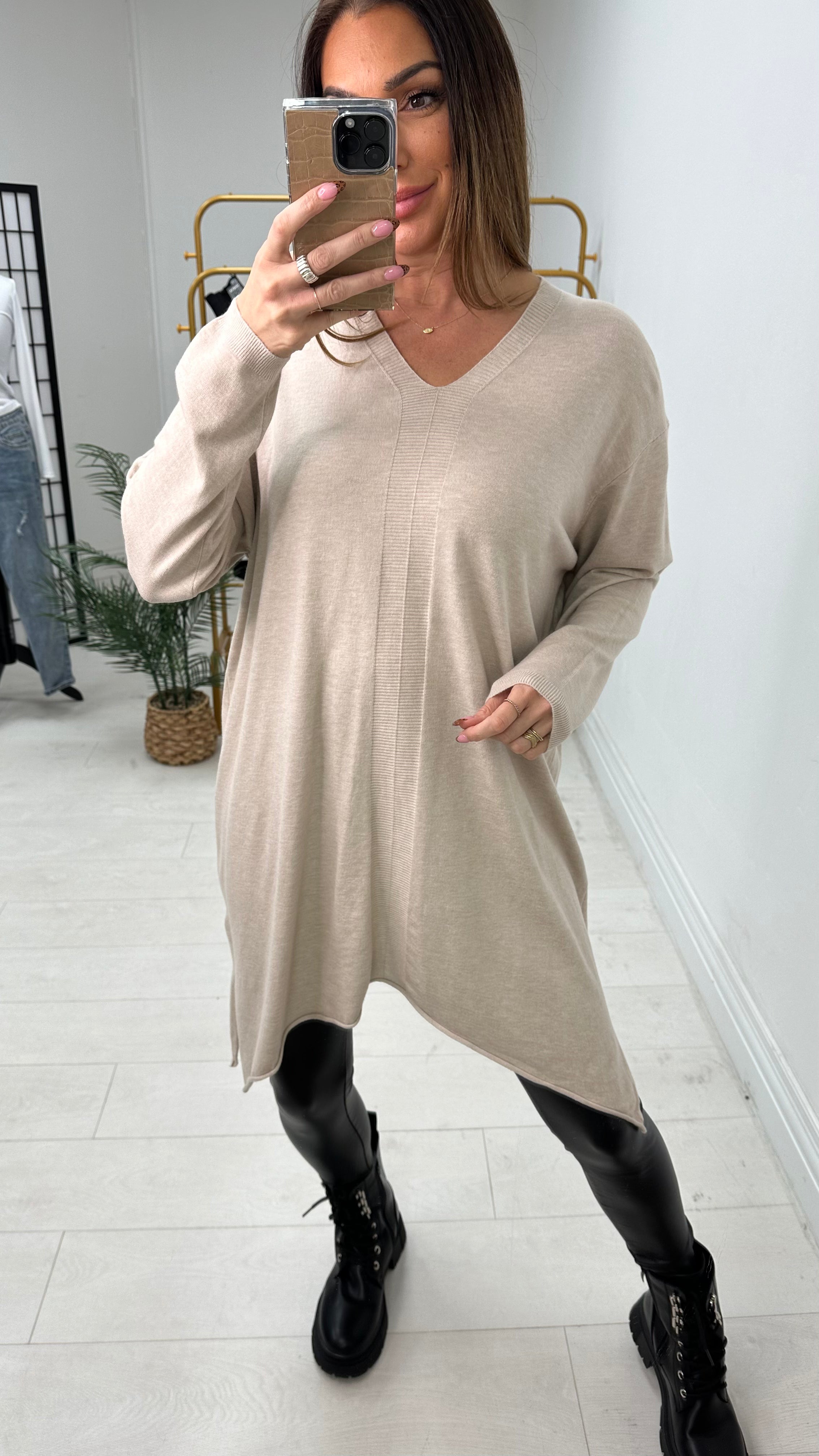 Dianne Plain Asymmetric Longline Knit Jumper