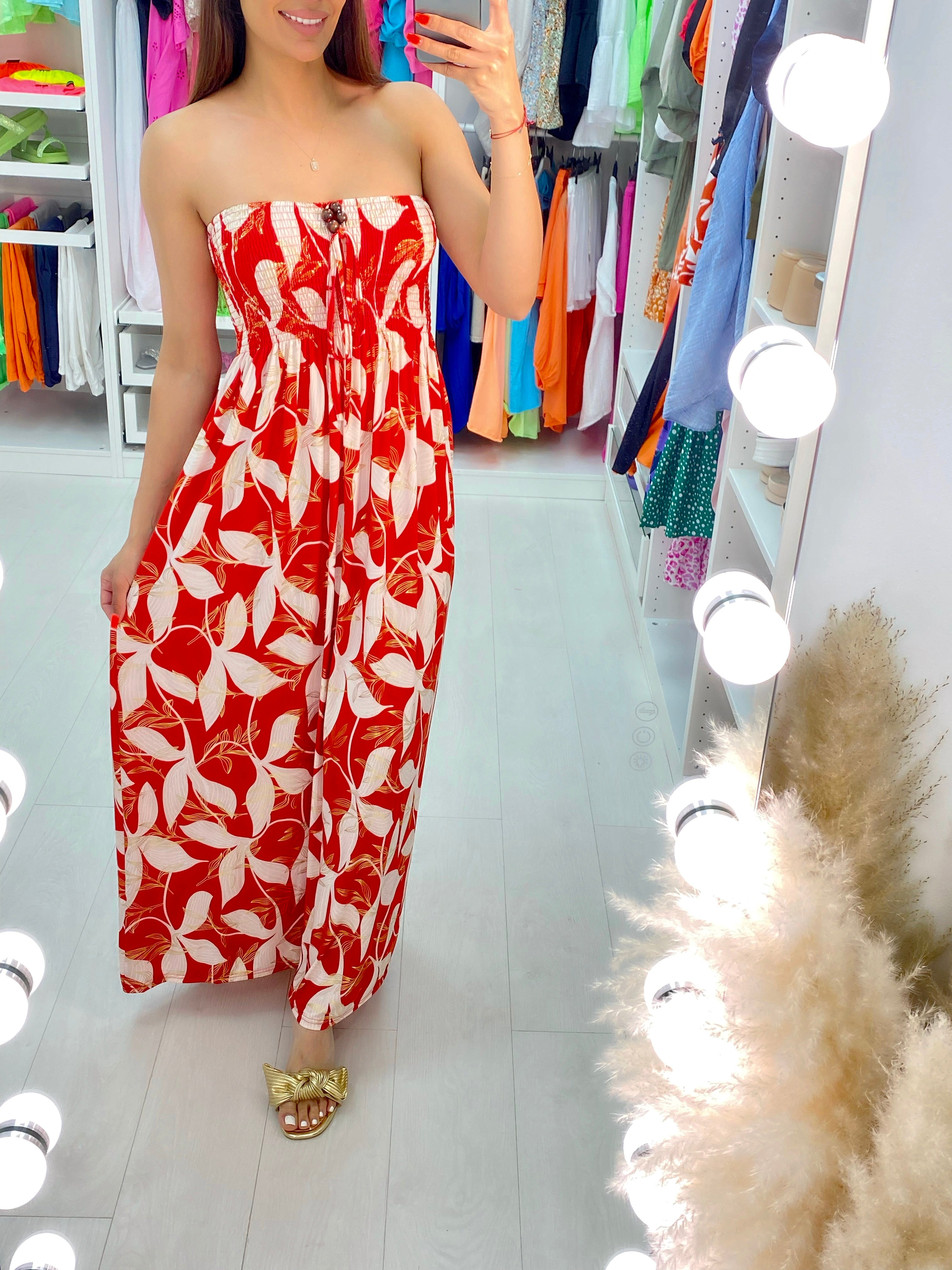 • Leaf Print Bandeau Maxi Dress