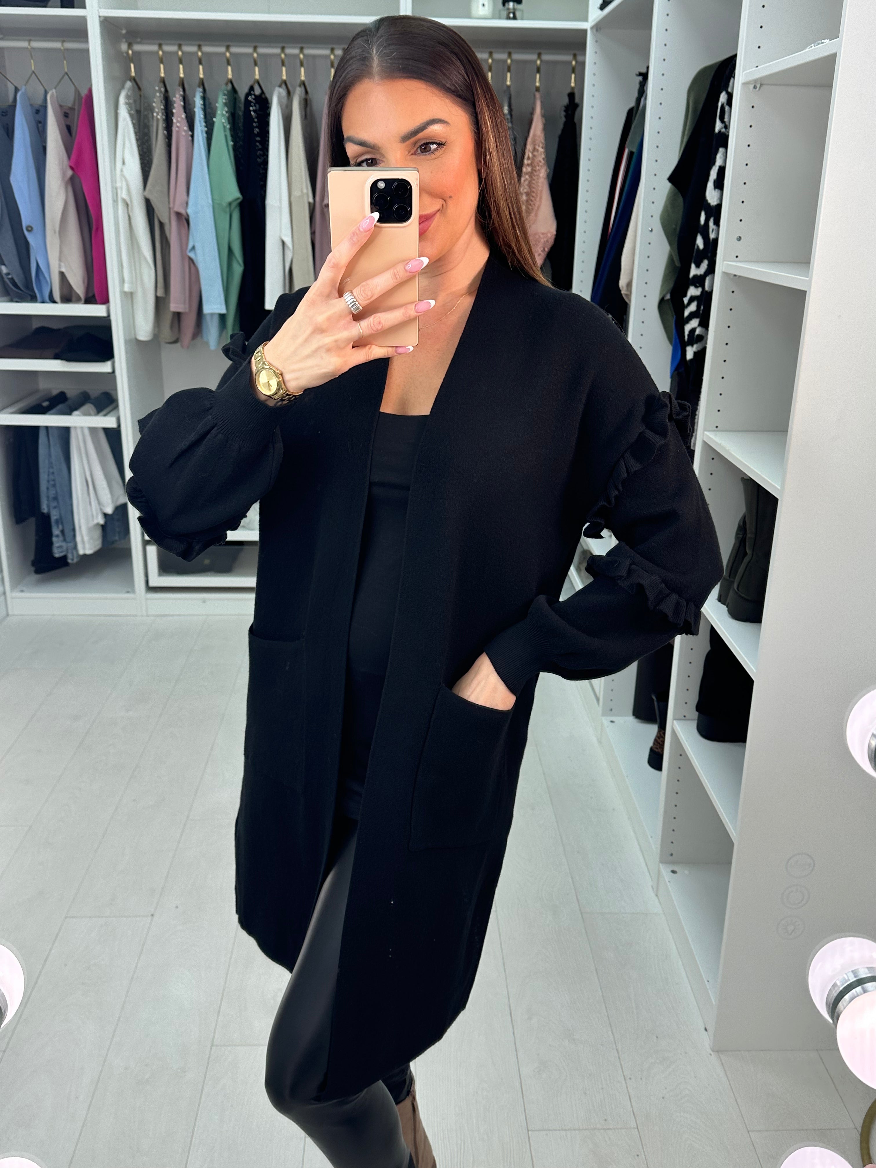 Erika Longline Frill Detail Knit Cardigan