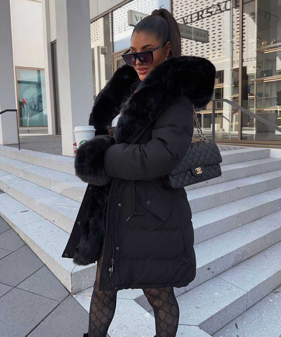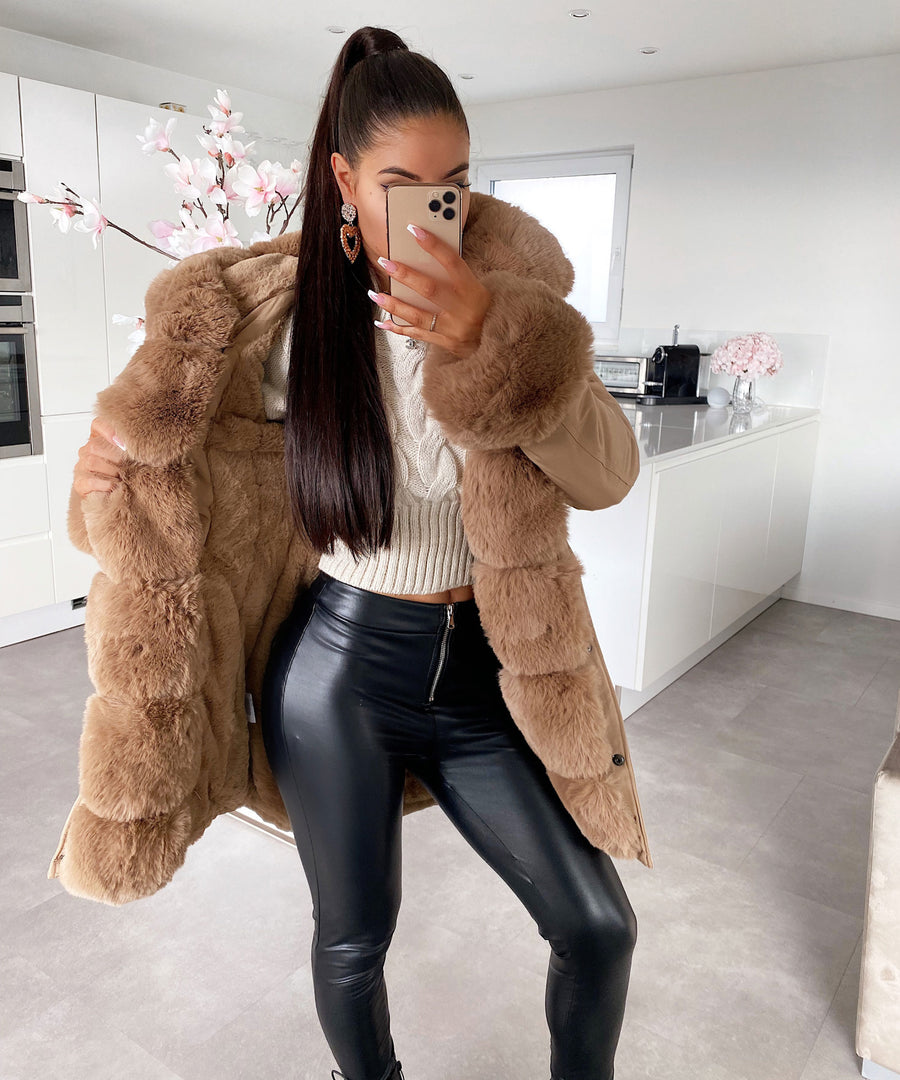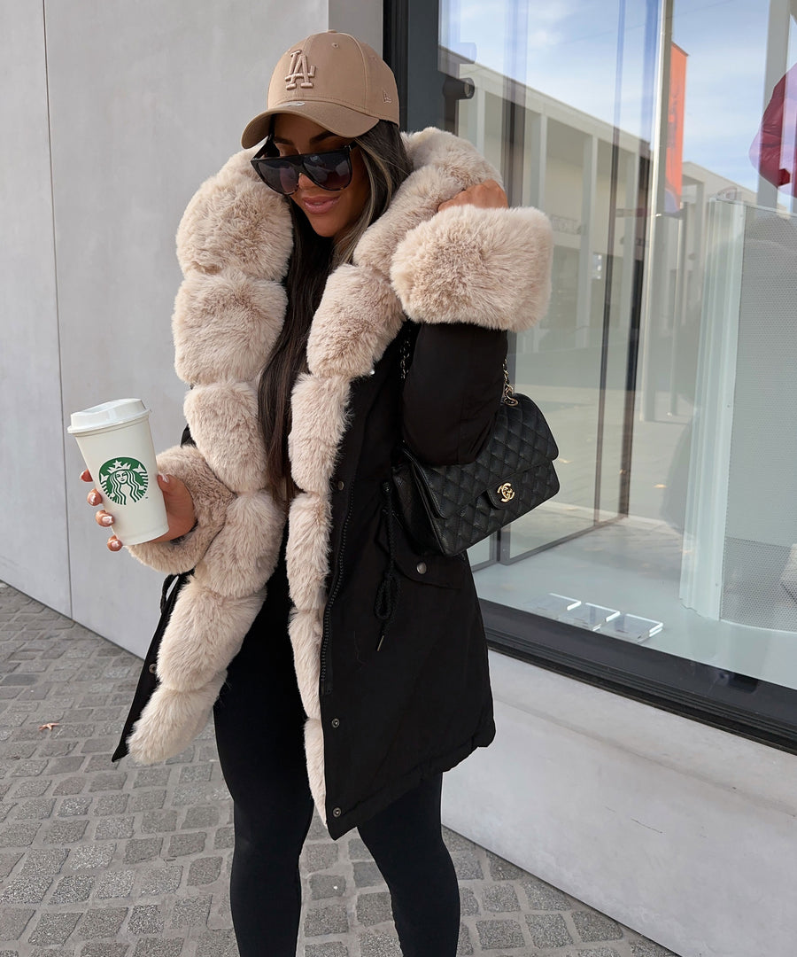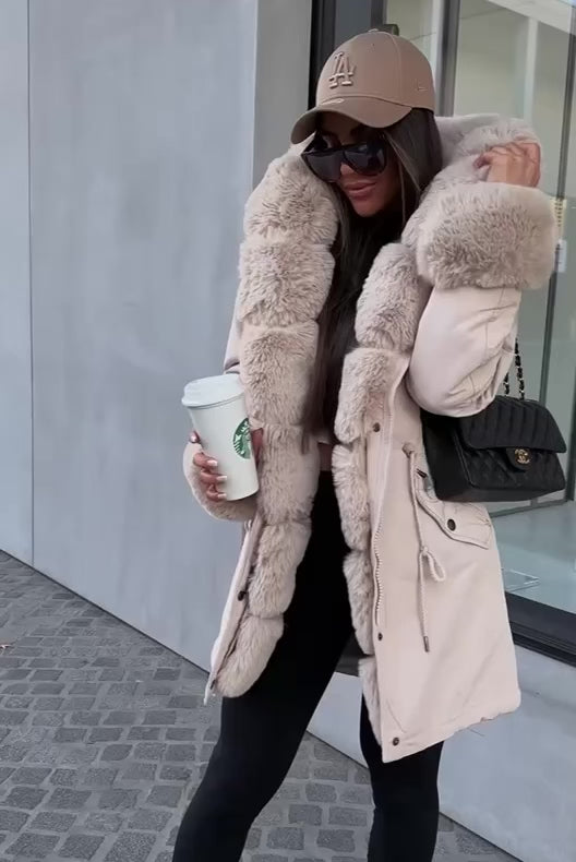 Faux Fur Hooded Toggle Coat