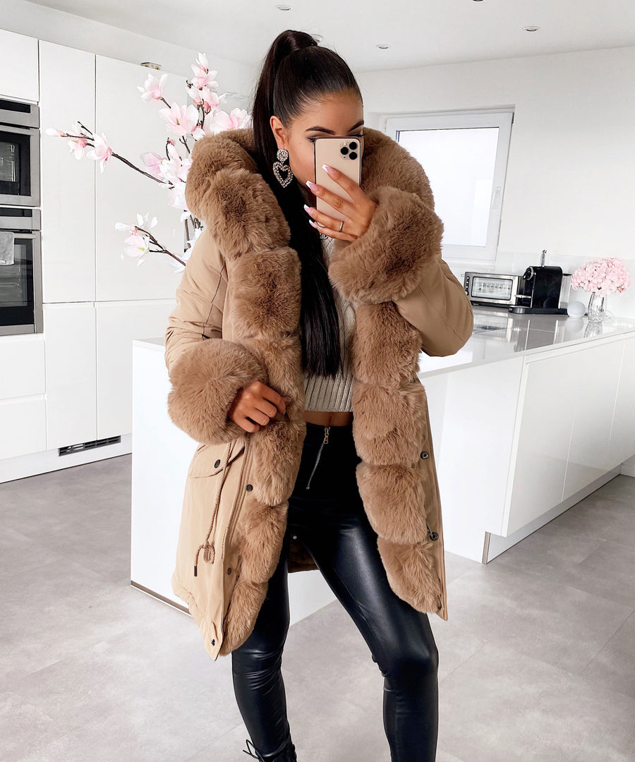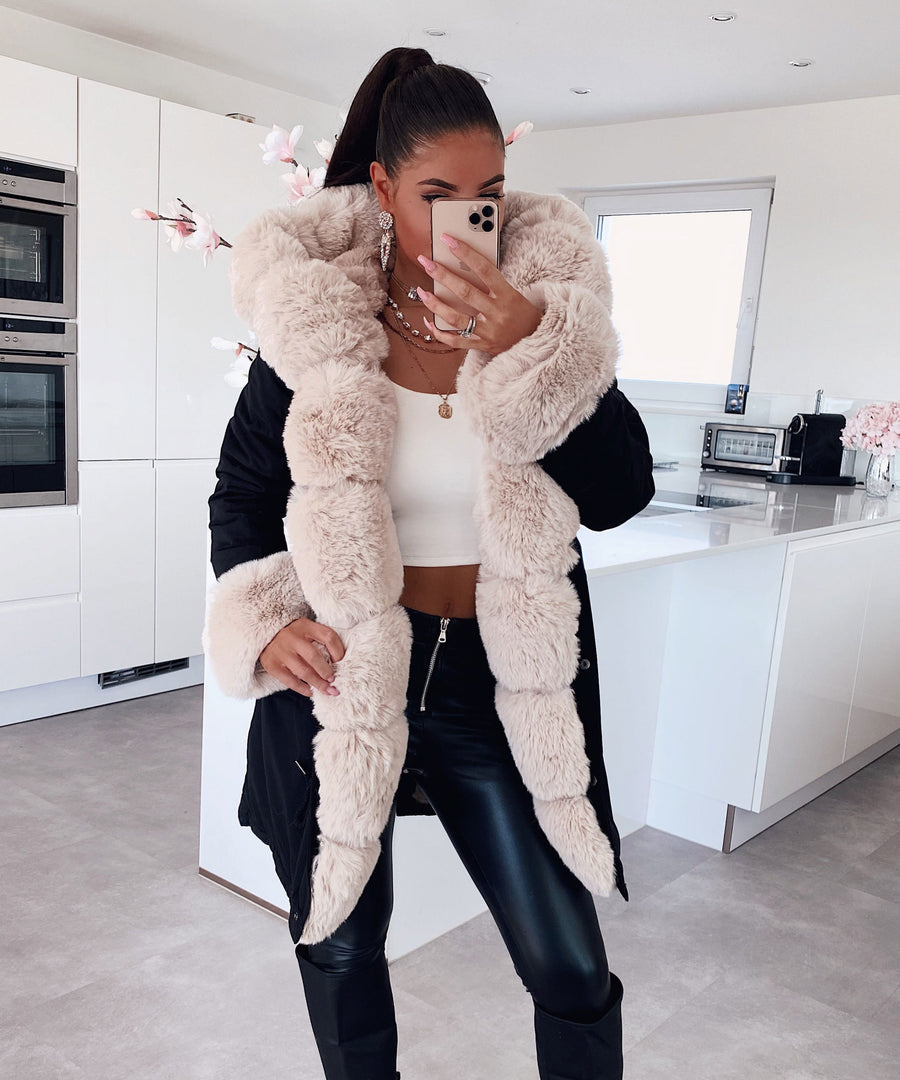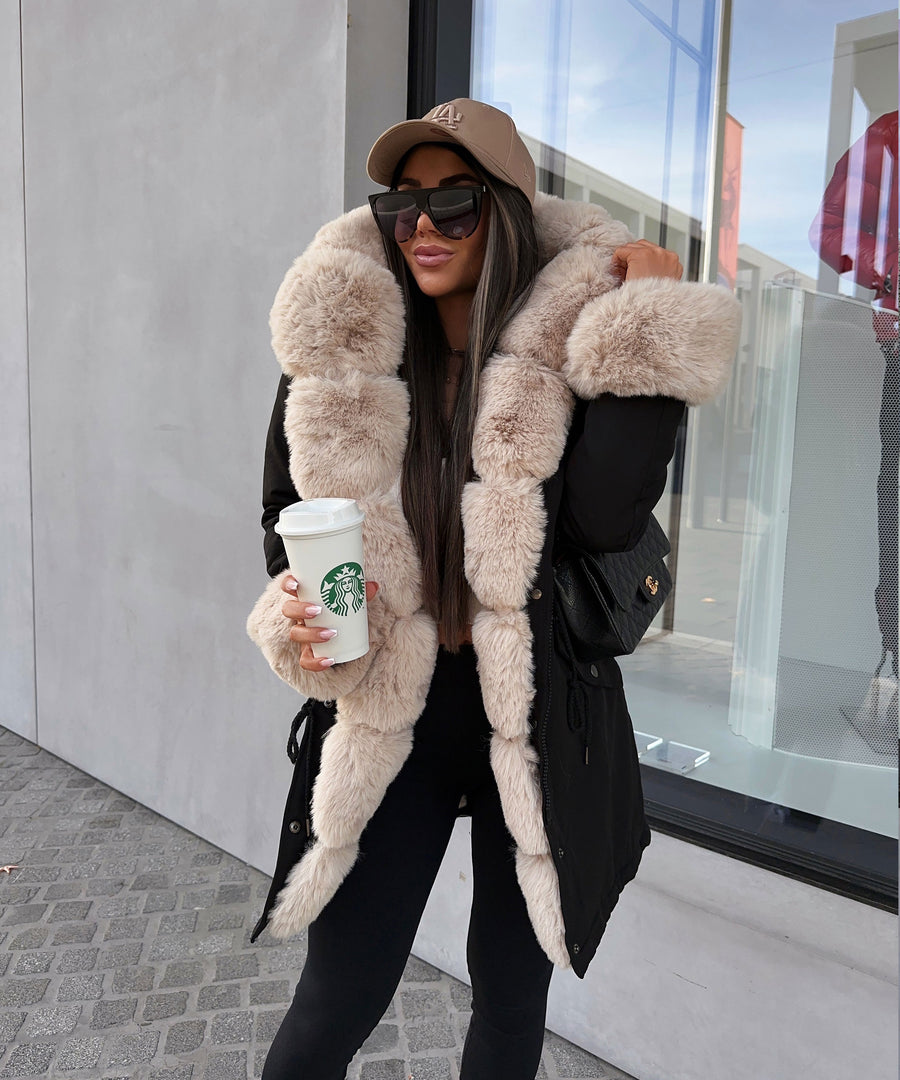 Faux Fur Hooded Toggle Coat