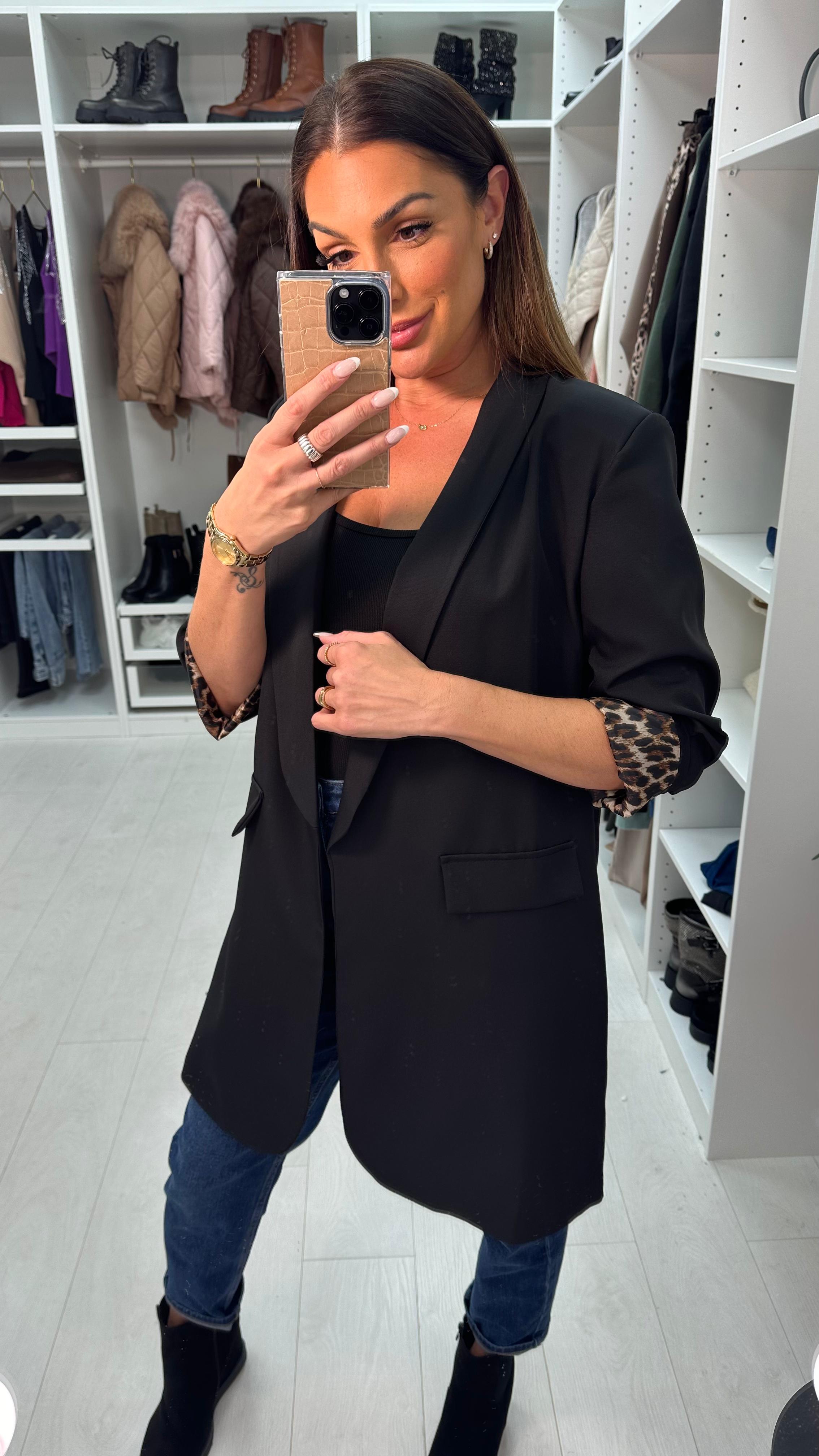 Kaylee Rushed Sleeve Leopard Detail Blazer